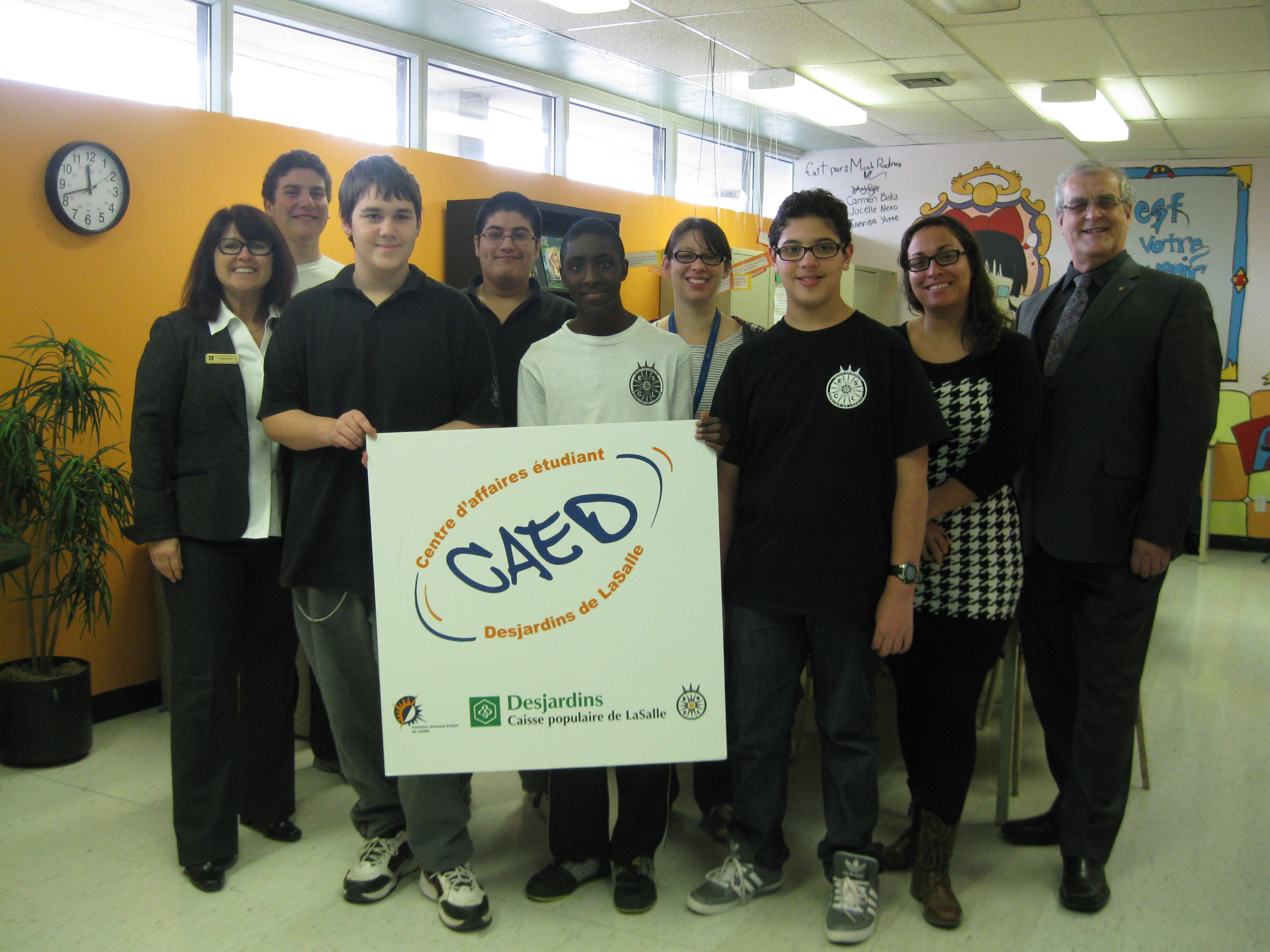 Le comité de financement, formé de huit élèves de tous les niveaux et profils, a accueilli Liliane Gilbert et Pierre-F. McDuff, administrateurs à la Caisse Desjardins de LaSalle, ainsi que Manon Dumont, directrice Communication et coopération. Les élèves et les gens de la Caisse Desjardins ont pu échanger sur le travail de chacun.