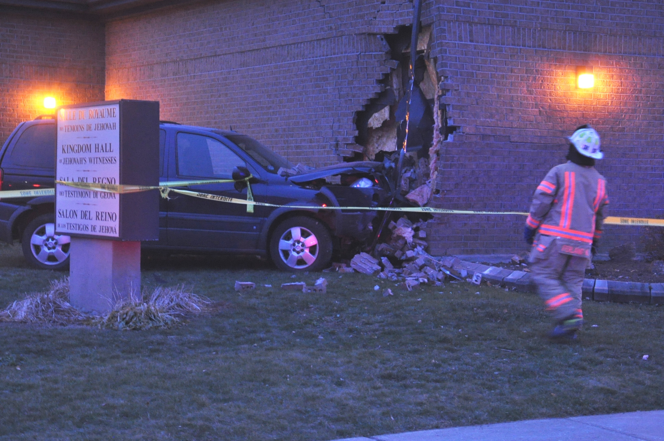 Un homme a été blessé légèrement lorsqu’il a perdu le contrôle de son véhicule avant de heurter une voiture et terminer sa course contre l’édifice de la Congrégation des Témoins de Jéhovah situé au 2100, boulevared Shevchenko, vers 15h50 le 2 décembre.