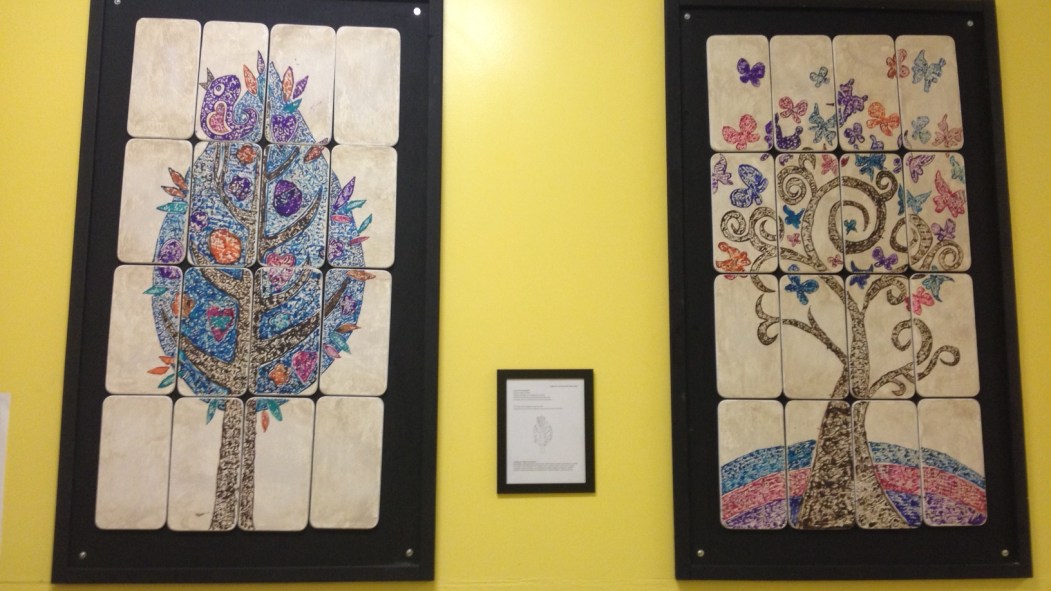 Dans le cadre du projet, chaque élève devait écrire, sur une petite tablette d’argile, la partie du poème qui lui était confiée. On a ensuite réuni les tablettes pour former un tout: quatre calligrammes de grand format sont maintenant exposés dans la cage d’escalier de l’école.