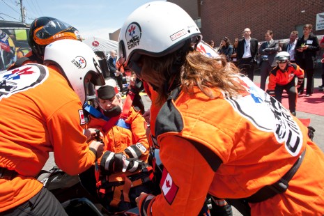 Les spectateurs ont été témoins de la simulation d’une intervention en cas d’accident sur le circuit de Formule Un. Les spécialistes immobilisent le pilote et le sortent de sa position précaire avec son siège.