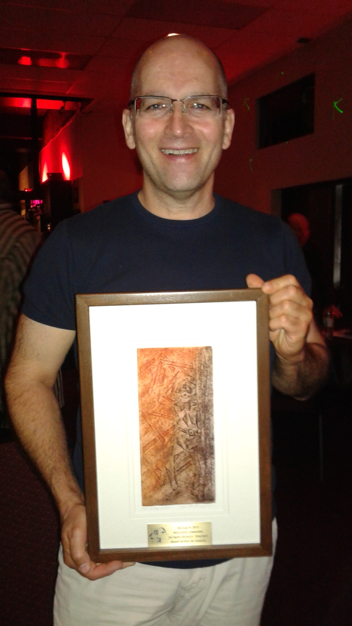 Jacques Legault a remporté le prix du Meilleur comédien pour son rôle de Vincent, affligé par l’obsession des chiffres, dans la comédie Toc Toc de Laurent Baffie.