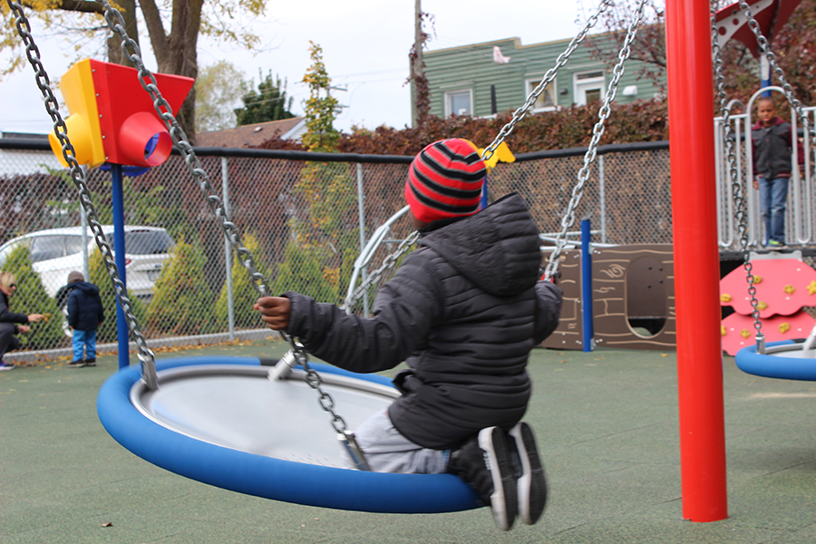 La cour du nouvel édifice de l’école John-F.-Kennedy ressemble aux autres, mais la différence est dans les détails. Dans cet univers destiné aux élèves autistes ou déficients du primaire, tout est en place pour répondre aux besoins de stimulation sensorielle et développer la motricité globale. Un aménagement qui a coûté 60 000$ à la Commission scolaire Marguerite-Bourgeoys.