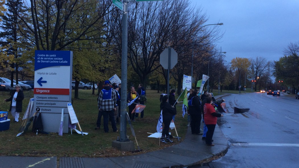 Tout en respectant les services essentiels, des employés de l’Hôpital de LaSalle ont pris part aux manifestations marquant la première journée de grève rotative proposée par le Front commun des syndicats membres de la fonction publique, le 29 octobre.