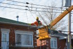 Un camion plate-forme avec élévateur a accroché accidentellement des fils électriques face au 302, 9e Avenue à LaSalle, vers 8h25, le 18 novembre.