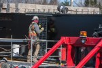 Malgré le froid et les forts vents du weekend dernier, plusieurs travailleurs s’affairaient à l’assemblage d’immenses poutres, à la hauteur de la 1ère Avenue.