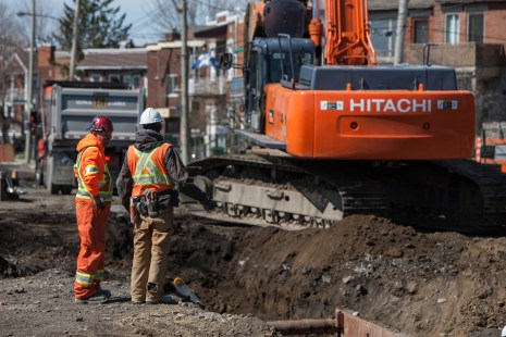 La firme responsable procède à l’excavation de la rue sur une profondeur d’environ cinq mètres (16 pieds), l’installation de nouvelles canalisations et leur remblayage, la reconstruction de la fondation de la rue, des trottoirs de l’asphalte, ainsi que la réfection des aménagements paysagers, si nécessaire.