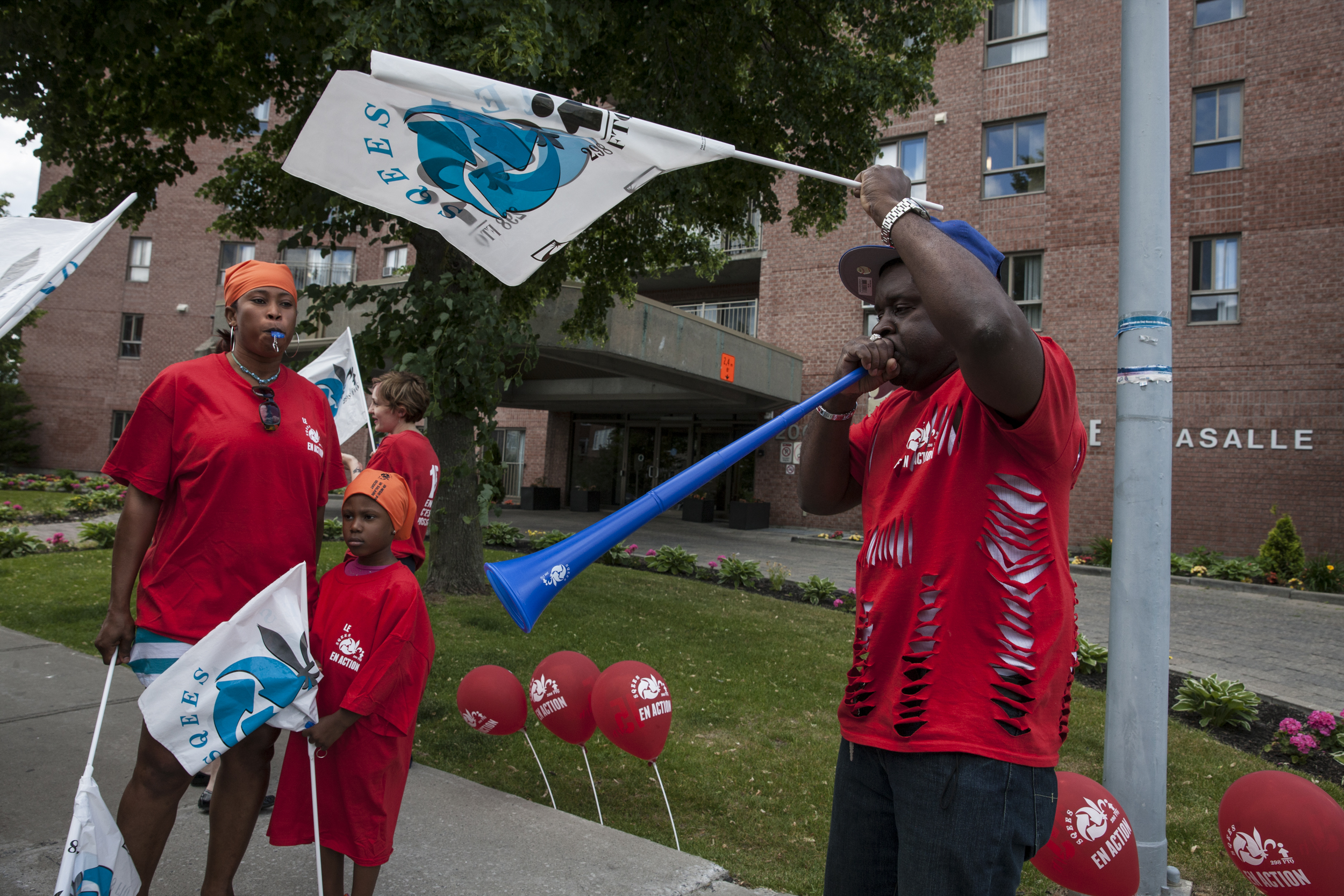 En matinée mardi, des travailleurs se succédaient devant la résidence les Floralies de LaSalle afin de manifester leur mécontentement. Ne pouvant interrompre complètement leurs services, les syndiqués manifestaient tour à tour à chaque heure sur la rue George.