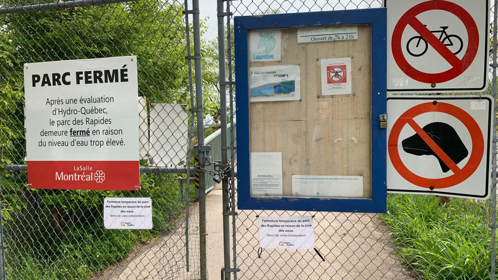 Le parc des Rapides est fermé depuis mercredi, et ce pour une durée indéterminée, en raison des niveaux d’eau du fleuve Saint-Laurent qui sont en forte hausse et font craindre