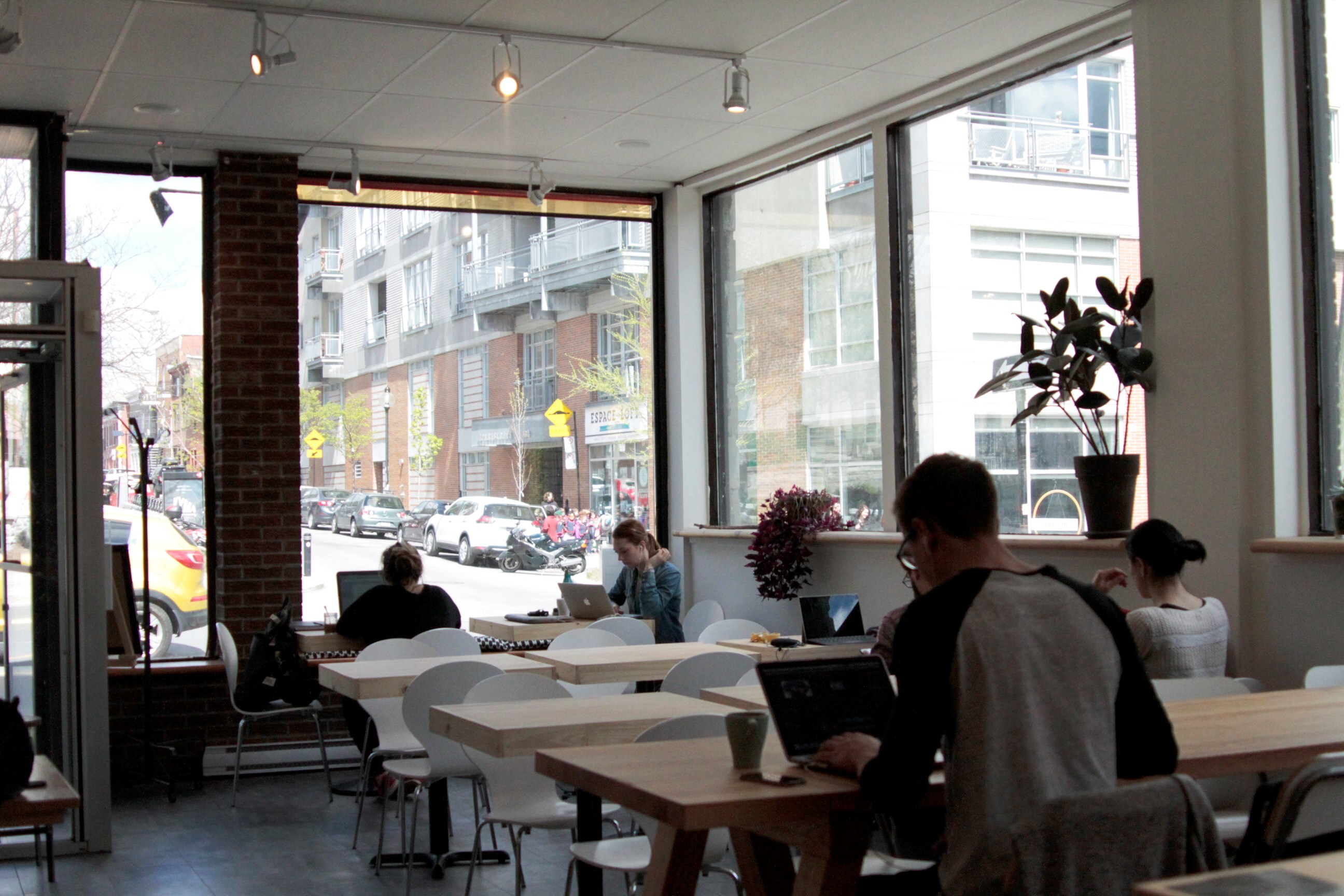 Avec un style épuré et surtout très lumineux avec de grandes fenêtres, ce café est un lieu où les clients peuvent rester toute la journée, en profitant de la nourriture et du café et thé à volonté, en payant à l’heure.