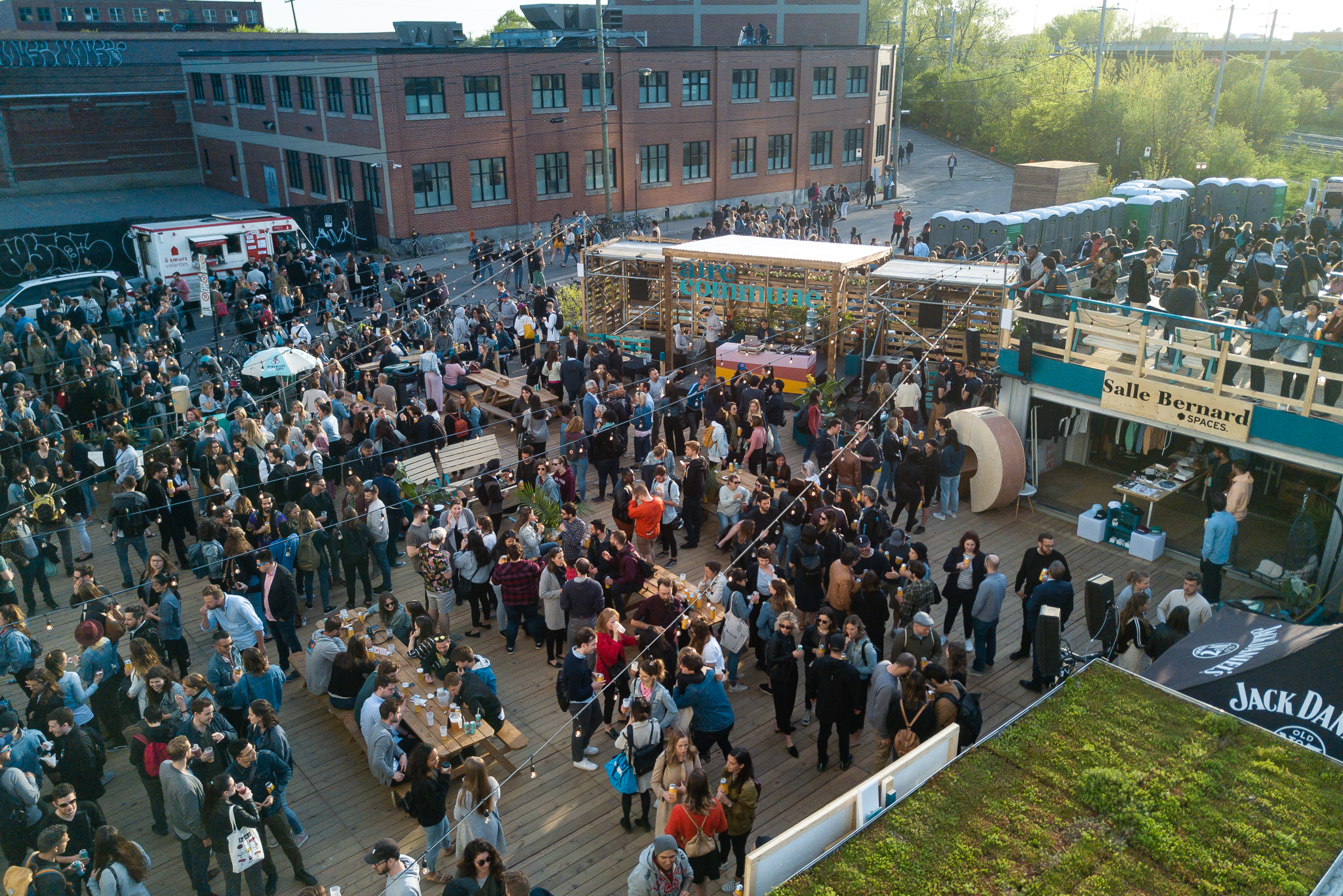 Pour cette deuxième saison, l’équipe d’Aire Commune a décidé d’agrandir également la terrasse située sur un des toits et d’installer un toit vert en collaboration avec une entreprise du coin, Toits Vertige, sur une des salles.