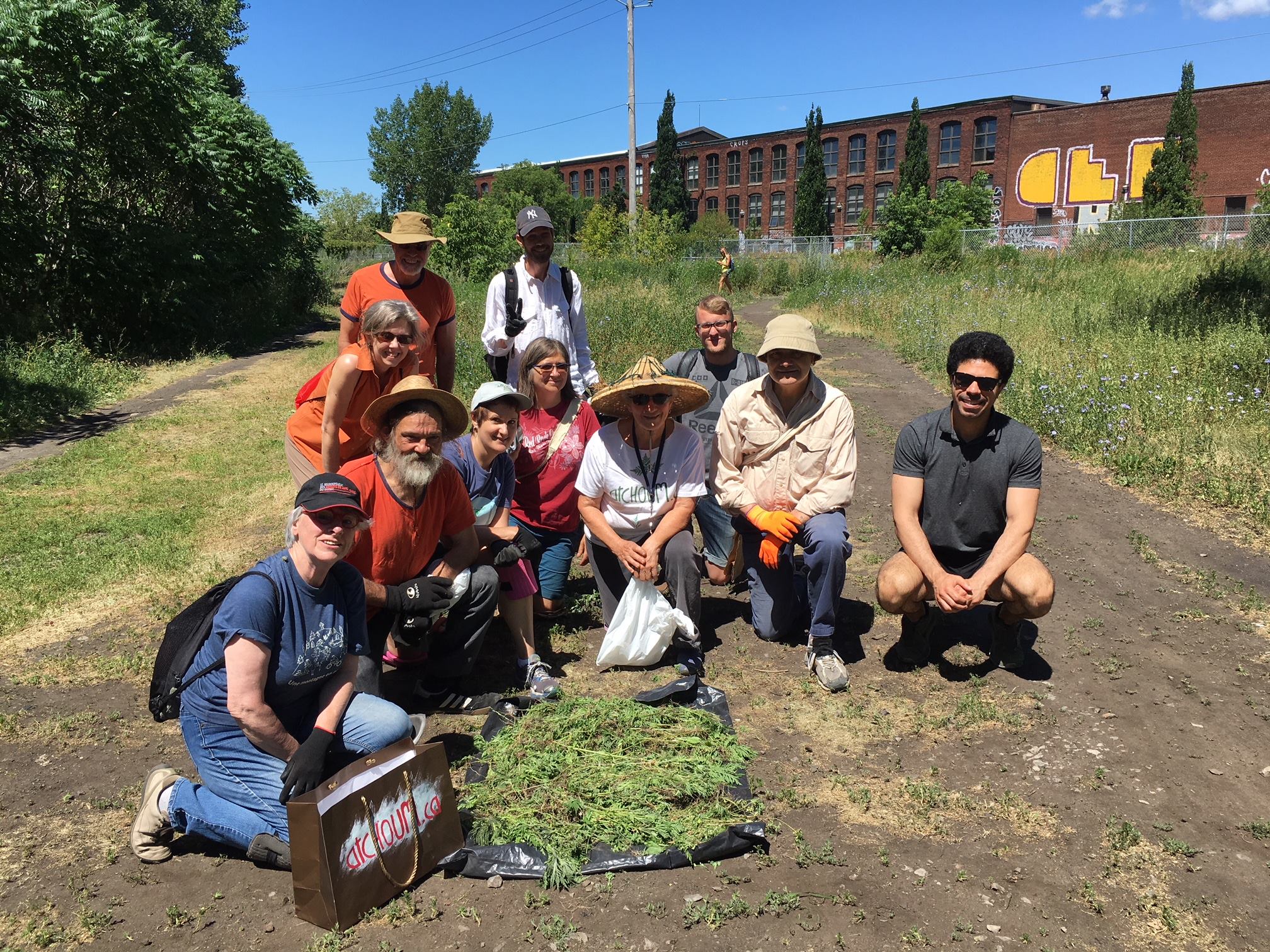 Une douzaine de bénévoles se sont mobilisées samedi 7 juillet dernier dans cet endroit du Mile End pour arracher cette plante qui nuit chaque année à la santé de milliers de personnes aux Québec et qui pousse principalement dans les terrains vagues.