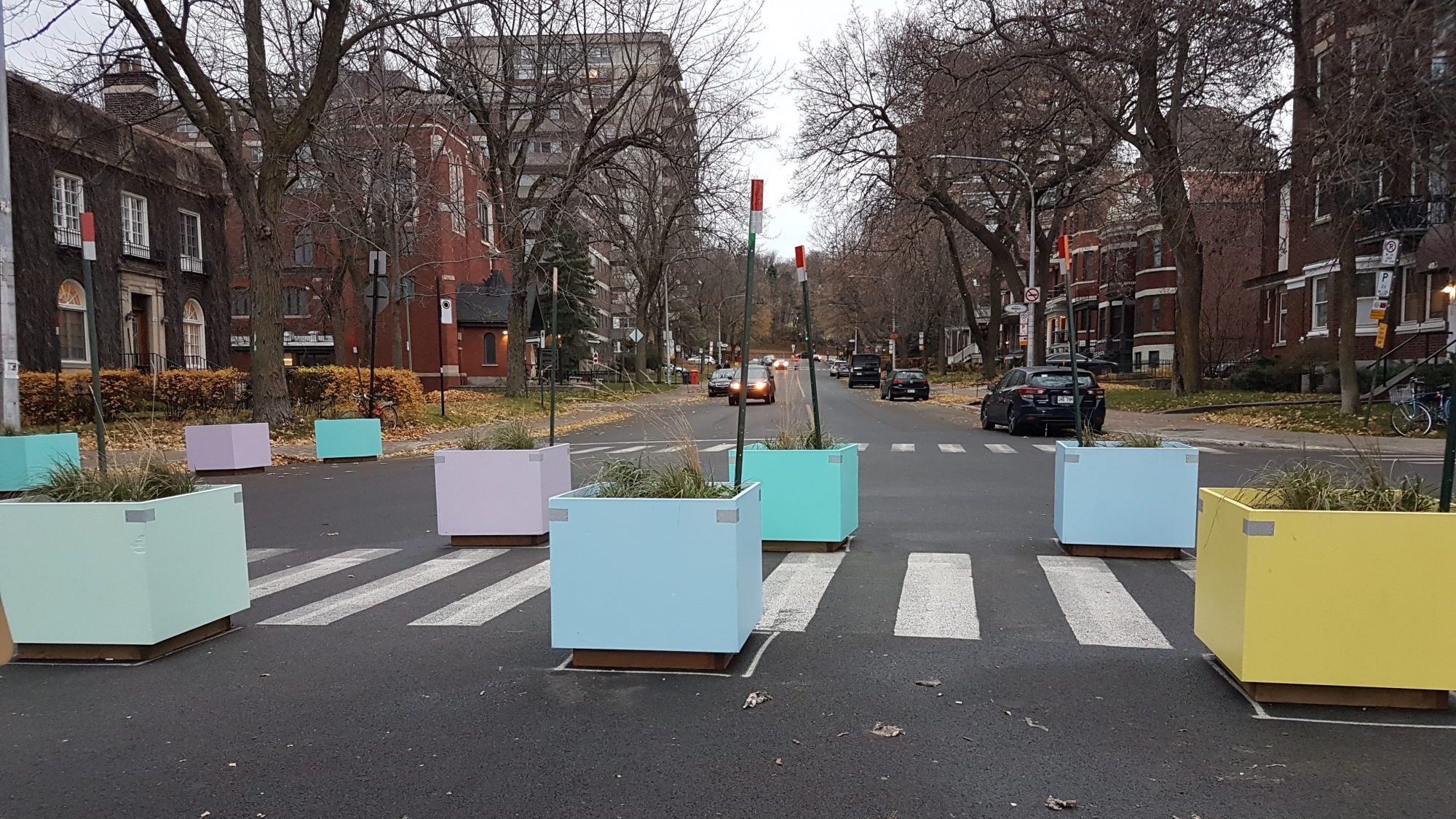 Des îlots de protection aux couleurs pastel ont été installés récemment à l’angle du boulevard Saint-Joseph Ouest et de la rue Hutchison.
