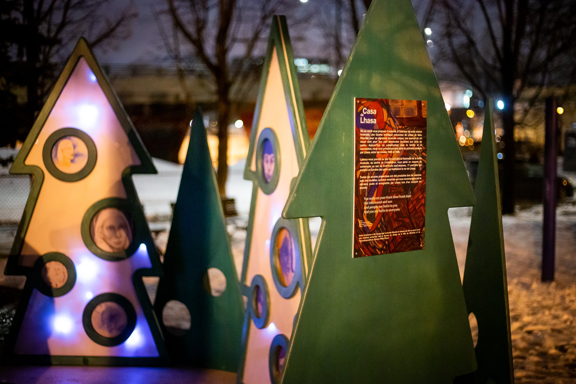 Dans la station hivernale qu’il a créée au Parc Lhasa De Sela, le studio de conception Dix au carré a voulu rendre hommage à l’artiste honoré par le parc. Cet espace interactif féérique vaut bien un détour dans le Mile-End.