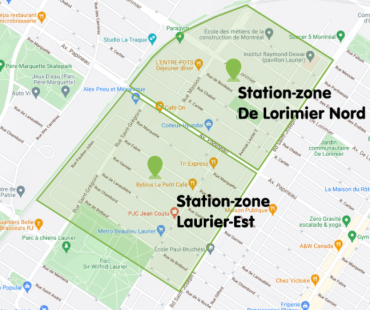 Deux stations-zones viennent donc de voir le jour dans l’arrondissement. On retrouve ainsi la station-zone De Lorimier Nord comprise entre l’avenue Papineau, le boulevard Saint-Joseph, la voie ferrée et qui s’arrête au niveau de la rue messier.