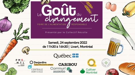 La foire Le Goût du changement, présentée par le Collectif Récolte, invite les résidents de Montréal à rencontrer les artisans de l’alimentation responsable le 24 septembre au Livart, de 11h30 à 16h30.