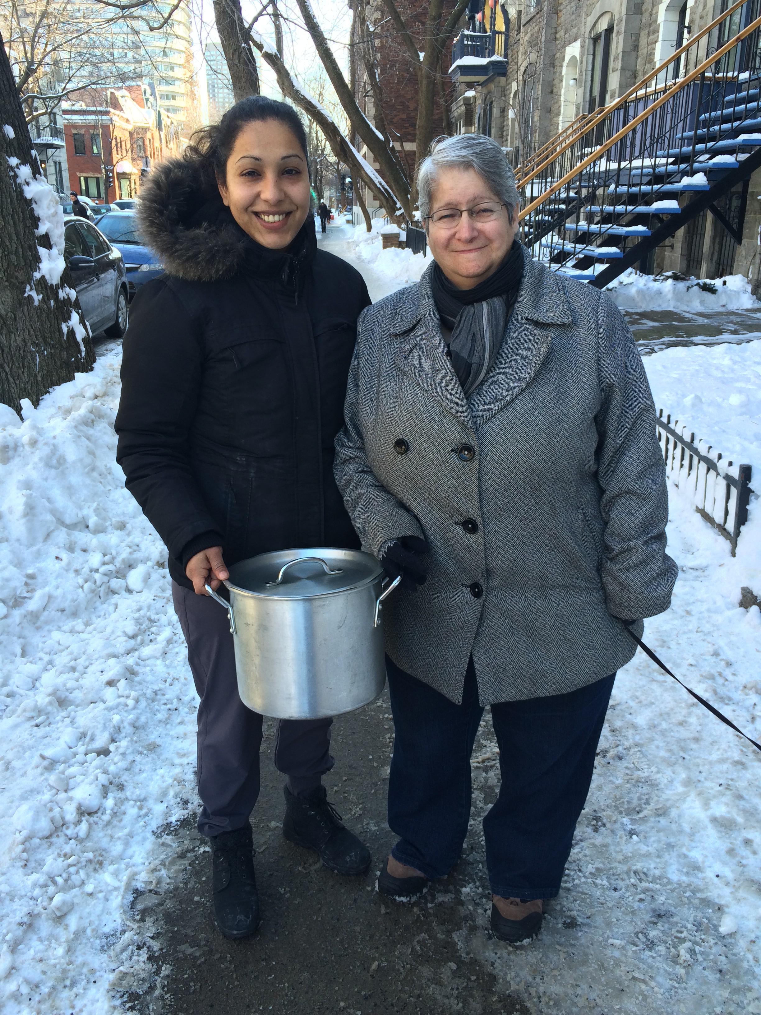 L’initiative citoyenne a été nommée Solidarité Milton-parc. Tous les samedis, depuis la fin du mois de novembre, Mme Labrecque cuisine un gros chaudron rempli de nouilles aux œufs, avec de la viande, des légumes et une sauce crémeuse. Par la suite, d’autres citoyens font le tour du quartier pour partager un repas chaud avec les personnes itinérantes du secteur, souvent d’origine inuit.