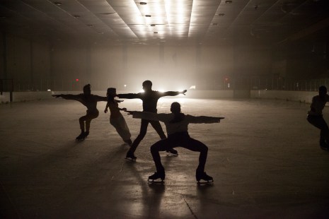 La dernière création de Patin Libre aborde les dynamiques entre les individus au sein d’un groupe. Cinq artistes tantôt se suivent, tantôt dansent seuls ou à l’unisson, accompagnés de musique et surtout de percussions dans la première partie. Les jeux de lumière soulignent le côté abstrait des performances, en mettant l’emphase sur chacun des gestes.