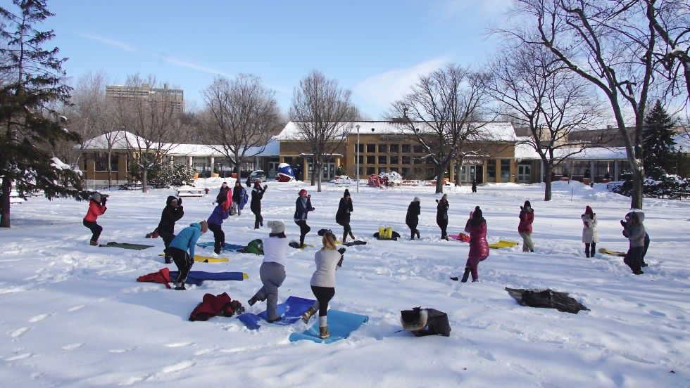 Tuque, bottes de neige et pantalon de ski ? Oui ça peut être aussi ça le yoga ! La saison d’hiver est de retour les fins de semaine dans les