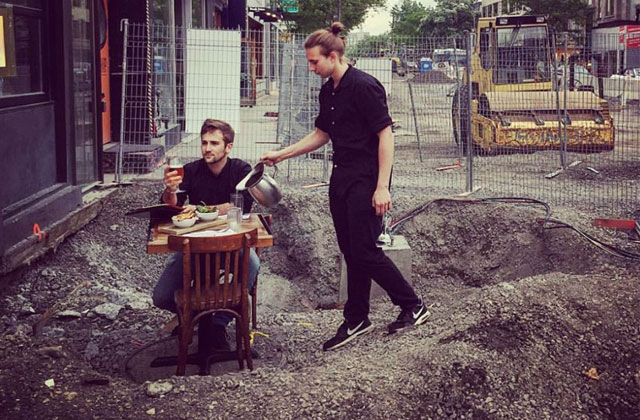 Le restaurant Le hachoir voit les travaux sur la rue Saint-Denis avec humour