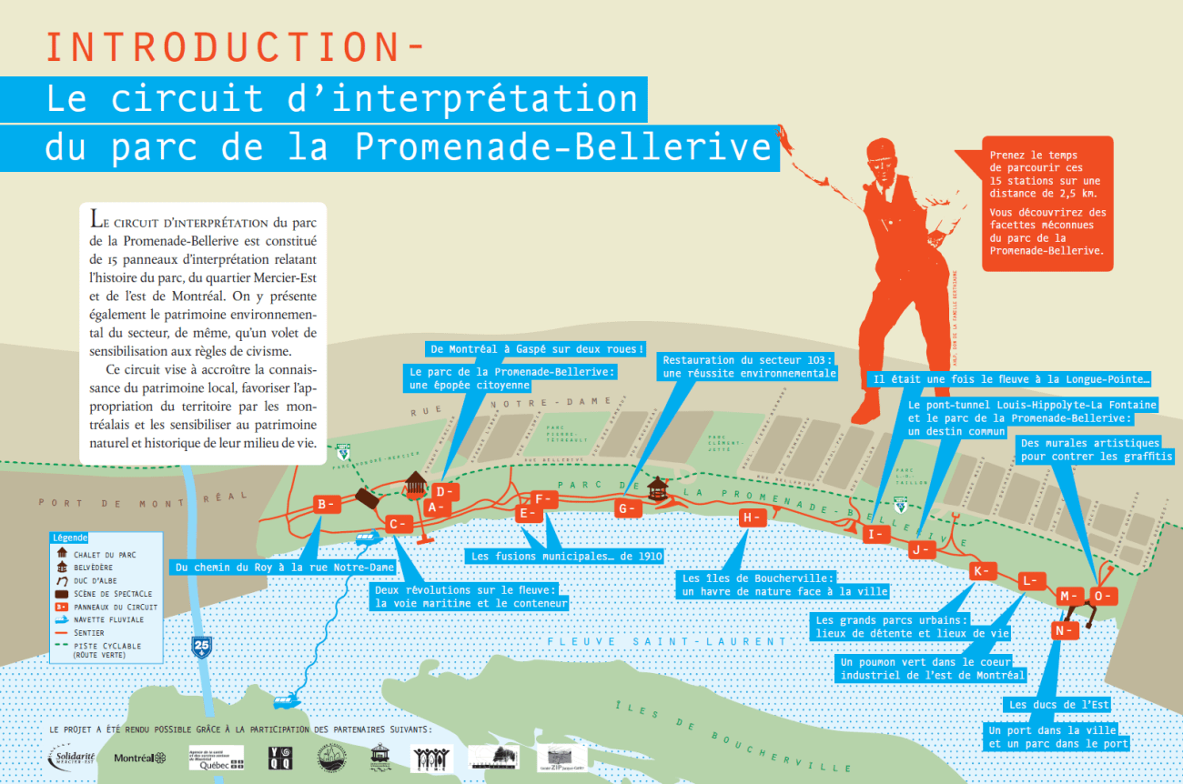 L’Atelier d’histoire de Mercier–Hochelaga-Maisonneuve ainsi que la Société d’animation de la Promenade Bellerive (SAPB) s’affairent actuellement à la conception de nouveaux panneaux d’interprétation. Les citoyens sont invités à donner leur avis.