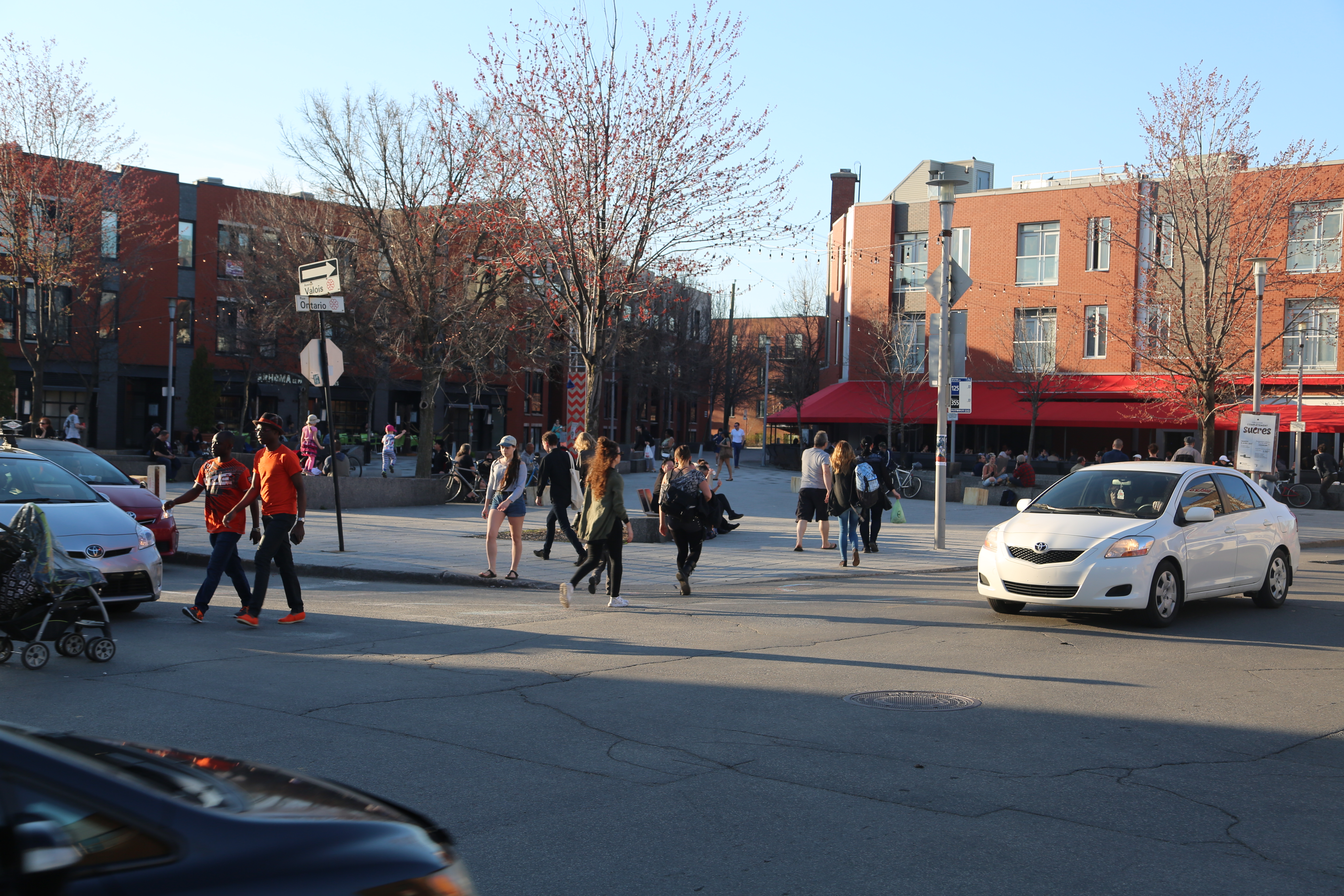 Le projet de piétonnisation porte mal son nom, puisqu’il s’agit en fait d’aménager la rue Ontario et la rue Valois, sur leur portion contingente à la place, en zone de circulation partagée. Les aménagements seraient ainsi faits de manière à sécuriser les déplacements piétons, en plus de la possibilité de fermer la rue pour des activités estivales.