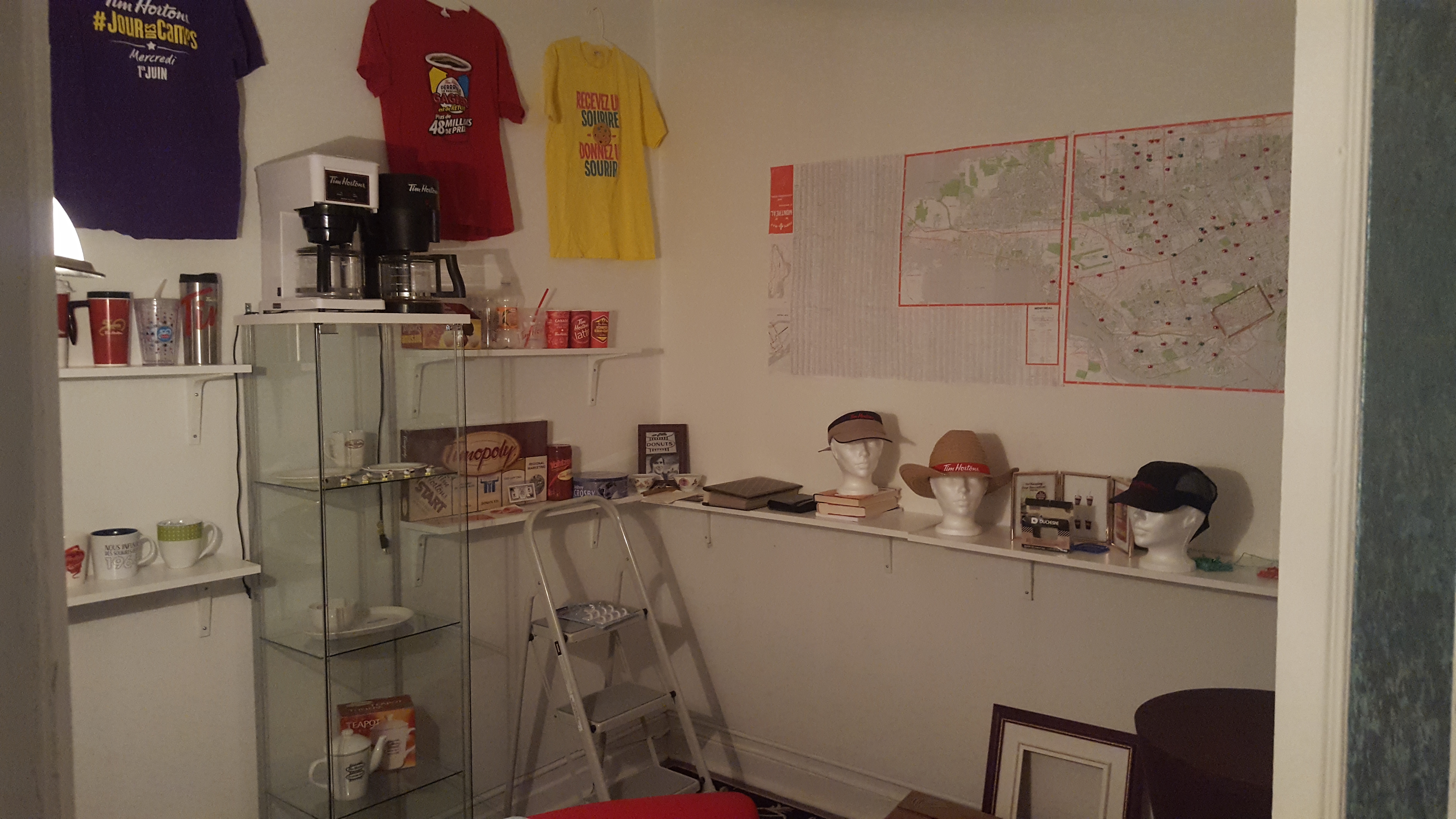 Depuis, le couple a recueilli une soixantaine de bibelots à l’effigie de la marque, produite par l’entreprise elle-même ou non. «Nous avons récupéré par exemple des boucles d’oreille d’une artiste en forme du cappucino glacé que tout le monde connait. J’ai aussi mis un jeu de dames avec des pions en forme de Timbits que j’ai fait dans un projet universitaire», a indiqué l’étudiant en arts visuels et à l’Université du Québec à Montréal.
