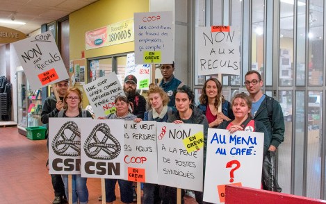«Depuis l’arrivée à échéance de notre convention collective en décembre 2016, plusieurs séances de négociations ont eu lieu. Mais les reculs exigés par la partie patronale sont si importants, que nous n’avons d’autre choix que de manifester notre mécontentement sur le trottoir», a expliqué le président du Syndicat des travailleuses et travailleurs de la Coop du cégep Maisonneuve-CSN, Jean-Sébastien Provencher.