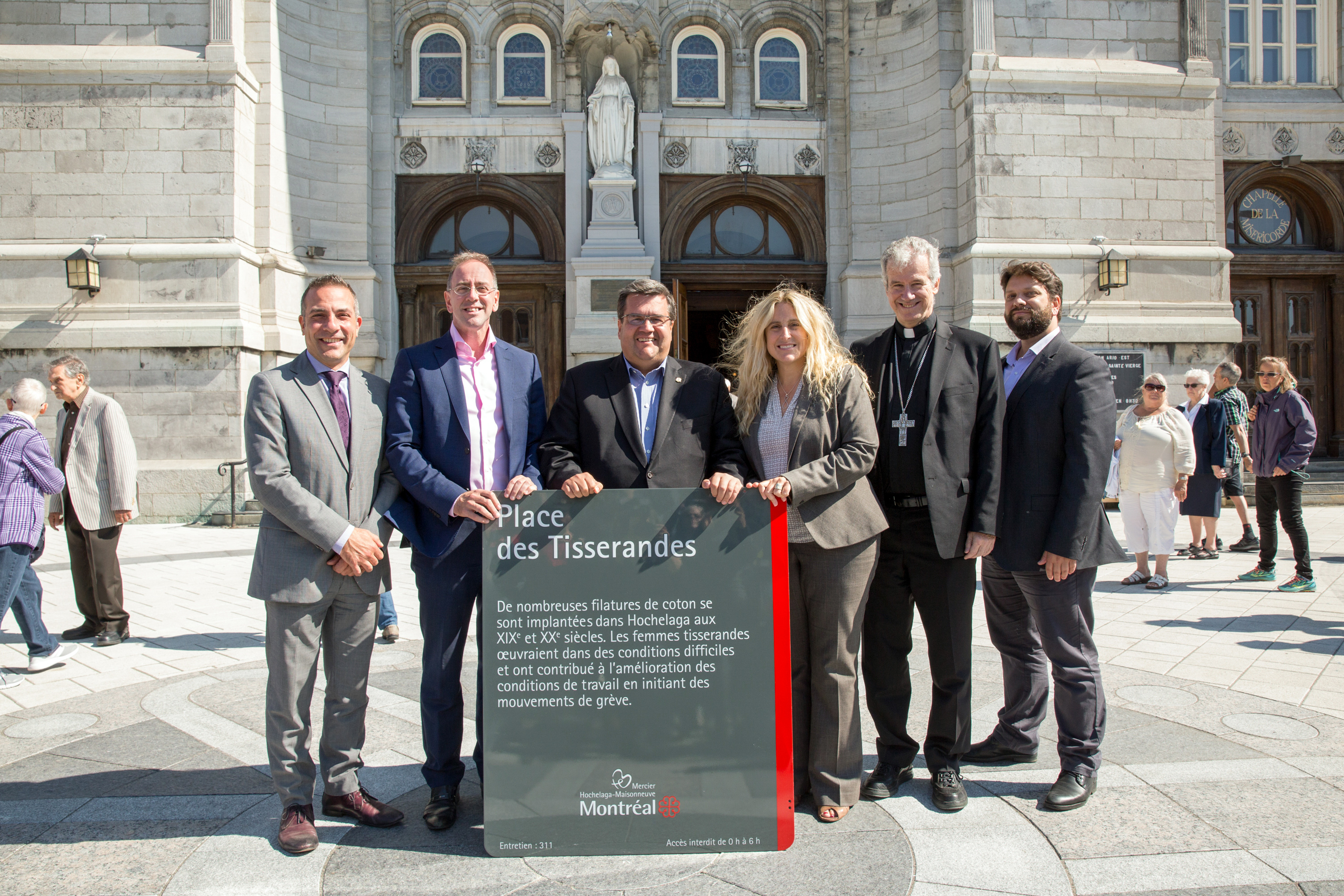 La nouvelle place des Tisserandes a été inaugurée en présence de Denis Coderre, maire de Montréal, de Réal Ménard, maire de Mercier–Hochelaga-Maisonneuve et de Monseigneur Christian Lépine, archevêque de la ville, dimanche 10 septembre.