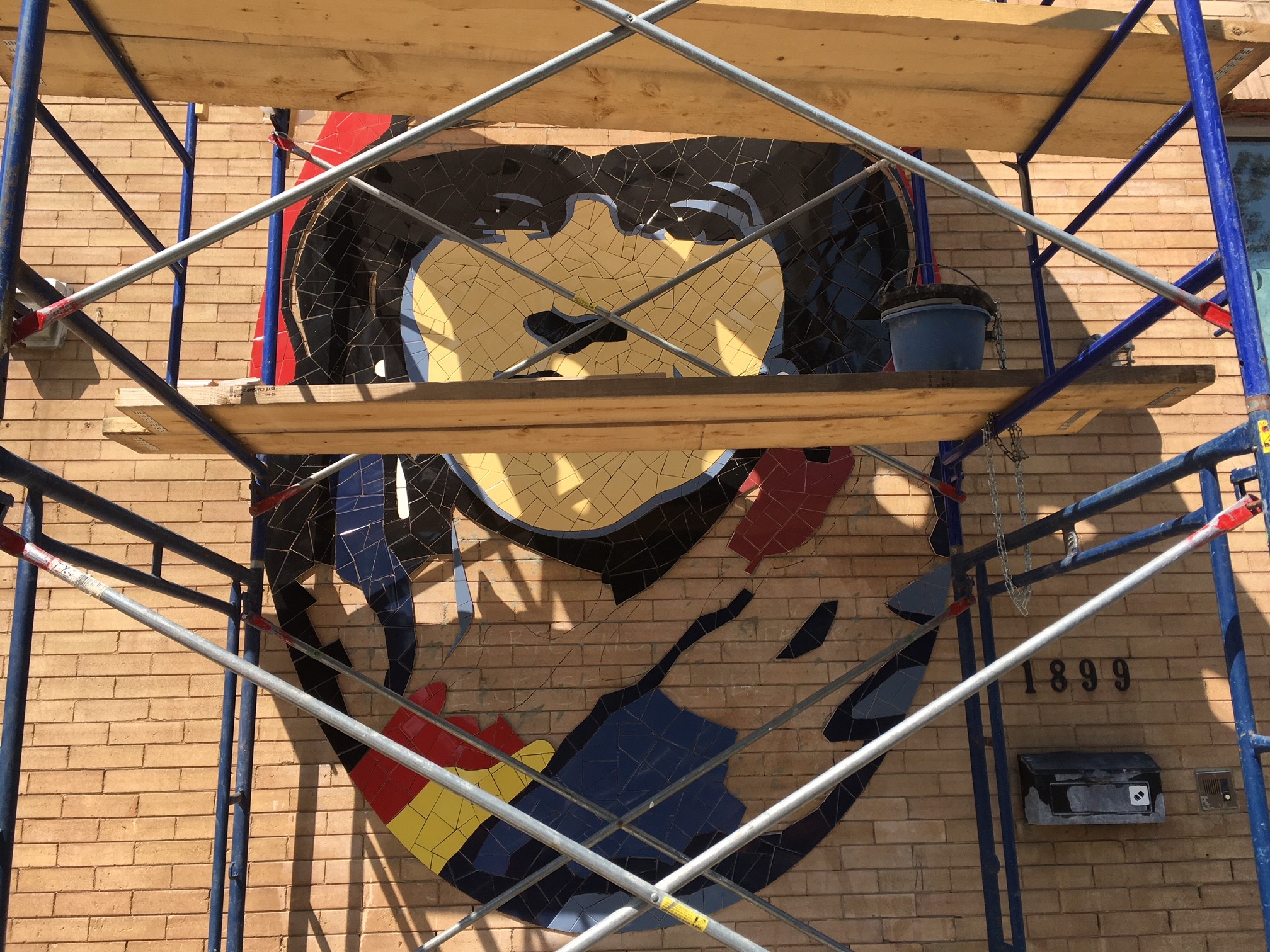 L’œuvre fera partie d’une série de portraits de personnalités connues qu’on retrouve sur la rue Ontario. La série est signée par Laurent Gascon, connu pour ses mosaïques de céramique.