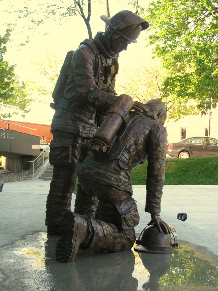 Ce monument rend hommage aux pompiers décédés. Réalisée par Jean-Pierre Busque, elle est impressionnante de réalisme.