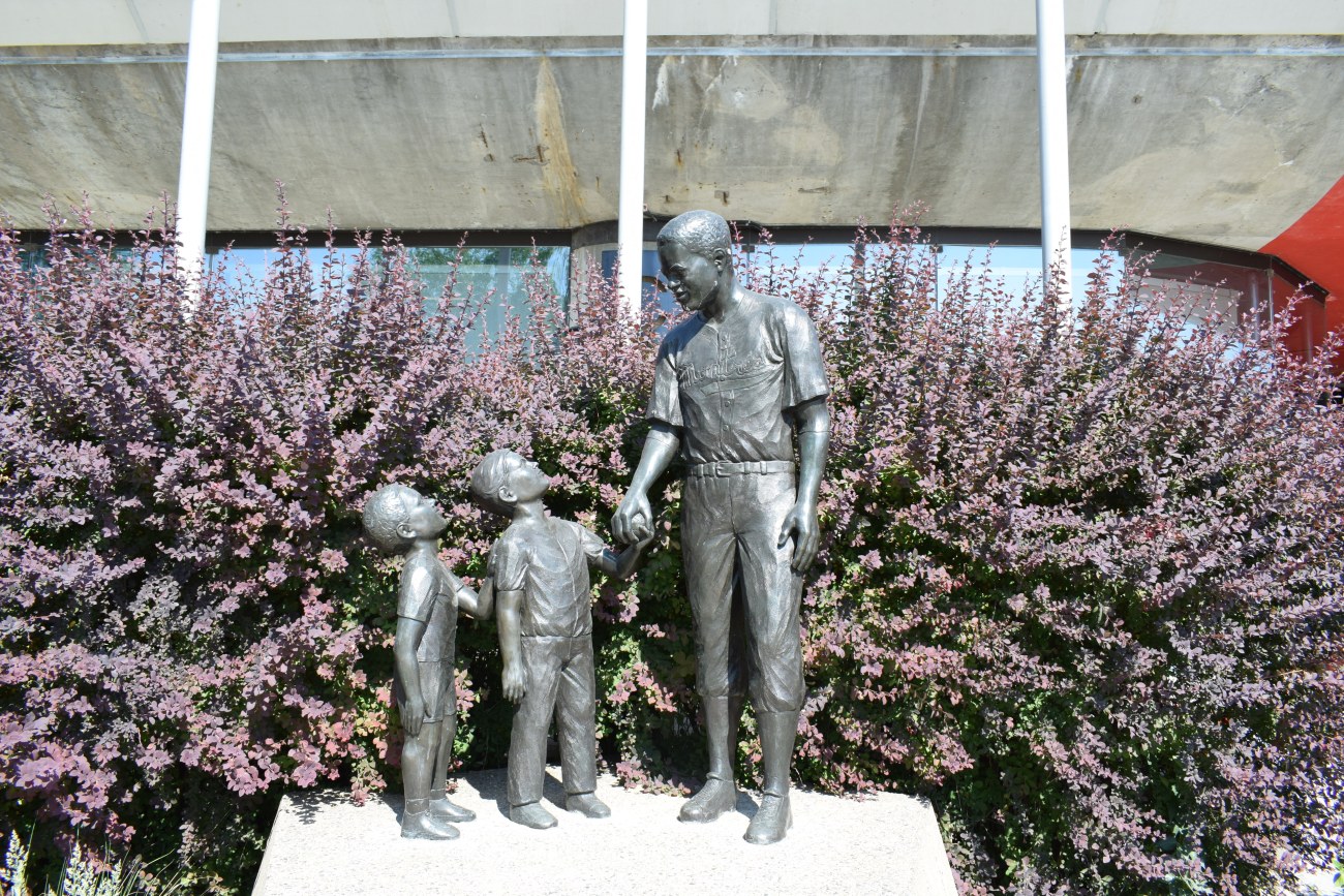 Elle représente trois personnages, Jackie Robinson donnant une balle à deux petits garçons.