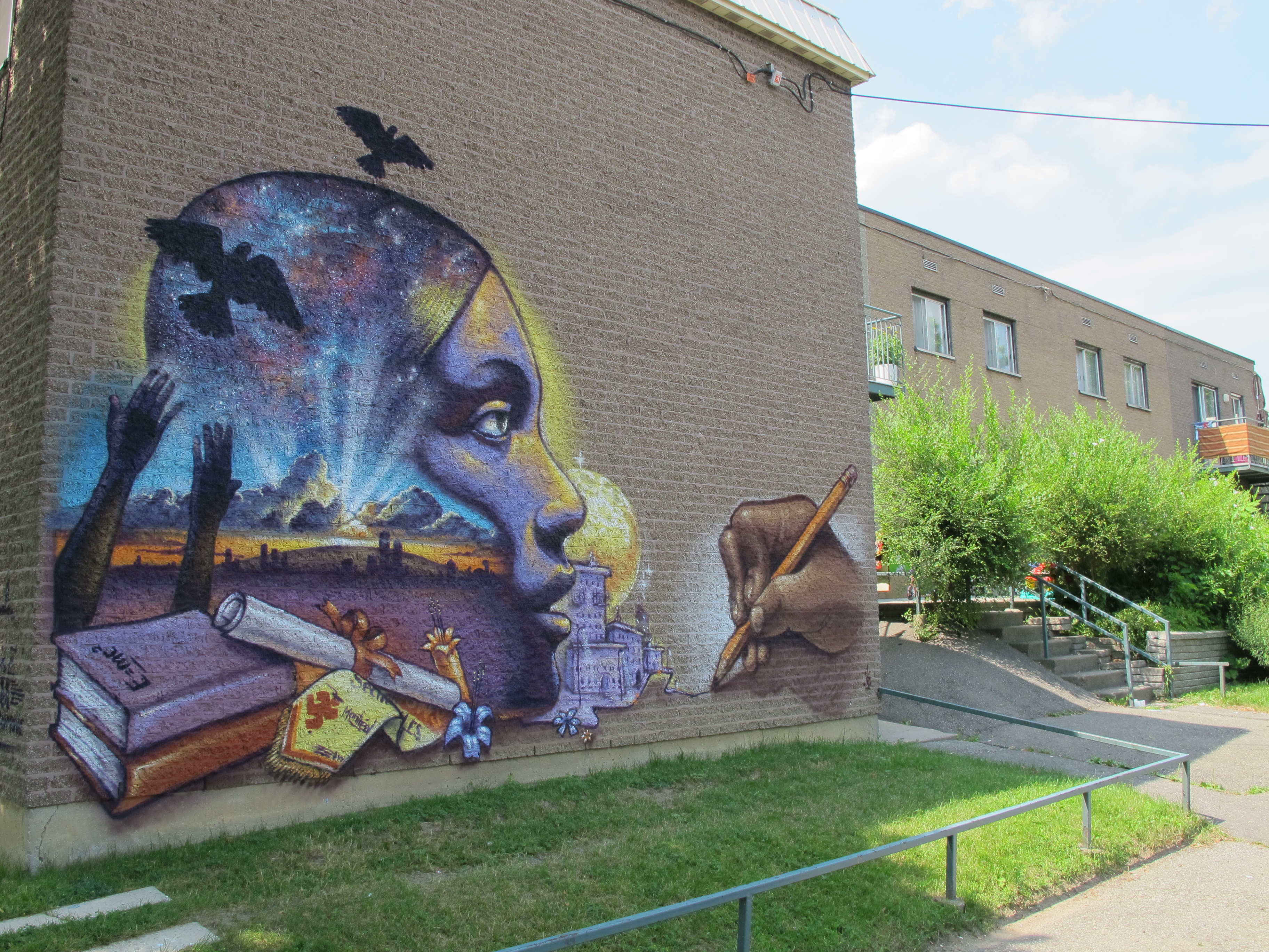 Rencontre avec les cultures de Yannick Picard est la toute première œuvre d’art public réalisée par l’organisme MU. Elle se veut être le reflet du quartier, un mélange de communautés ethnoculturelles.