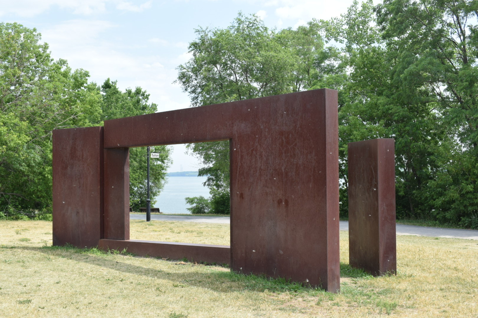 Elle est l’assemblage de 4 800 tubes carrés d’acier rouillés. Comme des couches géologiques, ils s’empilent pour donner une œuvre de plus de 10 mètres. Monumentale comme le stade de soccer voisin, elle est aussi faite de strates, faisant écho à l’architecture du complexe sportif mais aussi à l’ancienne carrière autrefois implantée à cet endroit.