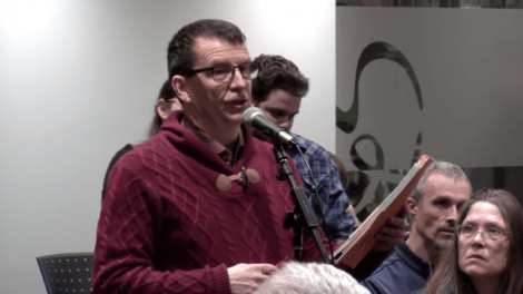 Raymond Moquin, président du CEM-E, posant sa question aux conseillers de l’arrondissement de MHM Photo: Capture d’écran YouTube, Arrondissement de MHM