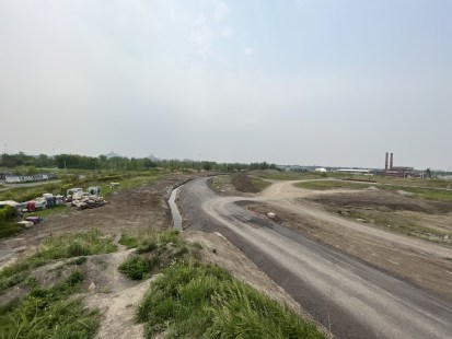 En 2023, la construction de cette plateforme avance bien, deux ans après la dernière décision de justice et quelques mois après la délivrance des autorisations délivrées par le gouvernement provincial. Sur le terrain de Ray-Mont, cet espace mi-friche mi-verdure, les travaux s’accélèrent.