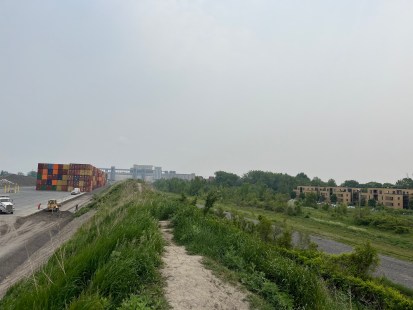 Le sol gronde du bruit des pelleteuses à Hochelaga-Maisonneuve. Ray-Mont Logistiques continue d’avancer dans ses travaux pour construire sa controversée plateforme de transbordement sur son terrain. La butte qui sépare les conteneurs stockés par l’entreprise de ses voisins a vu ses arbres être coupés et une nouvelle voie ferrée s’en approche.