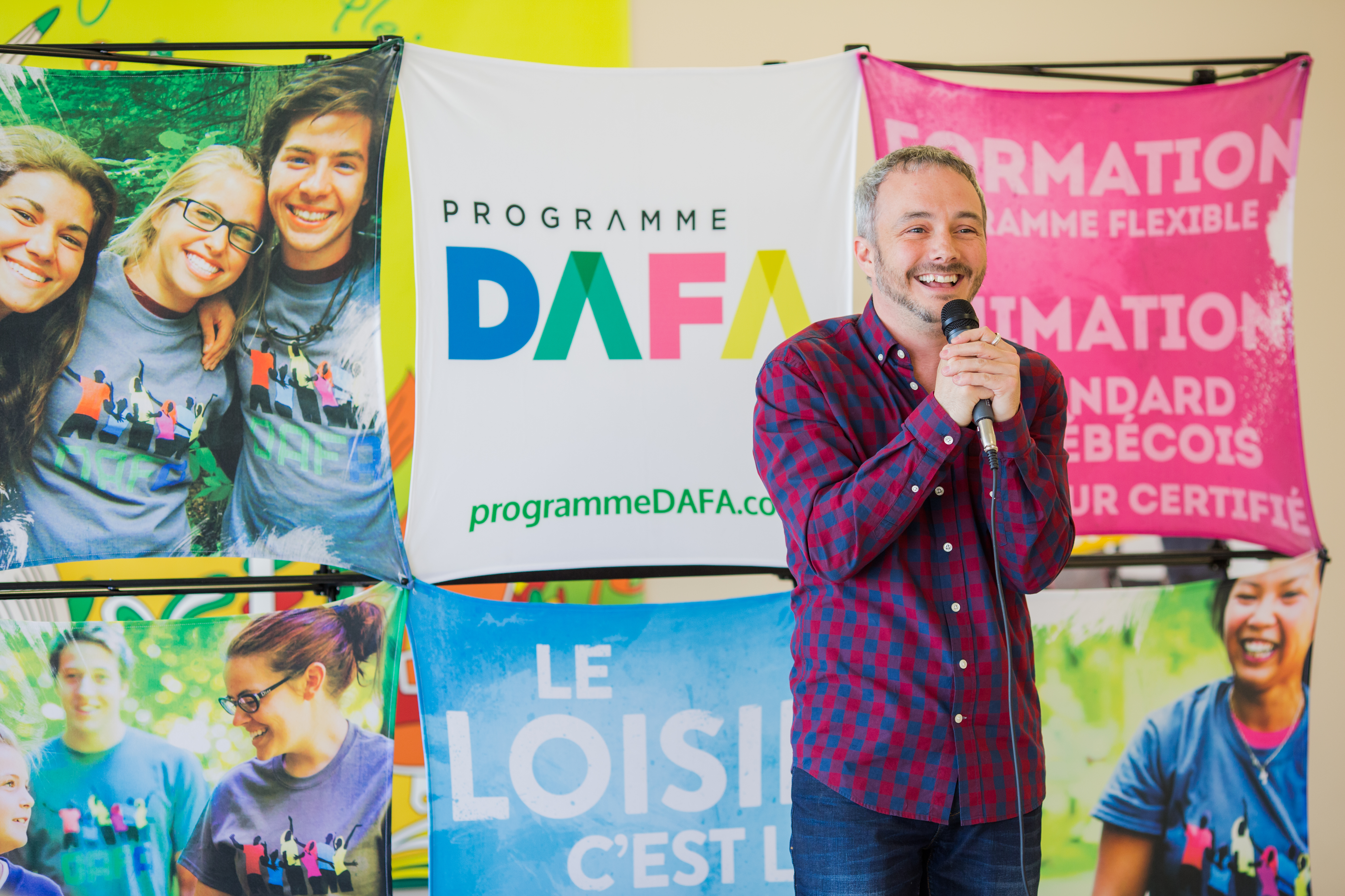 Afin de valoriser les animateurs ayant obtenu un diplôme d’aptitudes aux fonctions d’animateurs (DAFA), l’ancien animateur et acteur, Vincent Bolduc, a fait une tournée québécoise des différents milieux de loisirs québécois. Il était de passage au Centre culturel et sportif de l’Est, cet été.