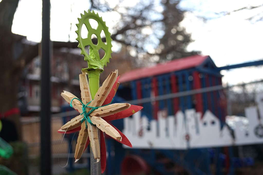 Des citoyens, ainsi qu’une quarantaine d’enfants du CPE Casse-Noisette et une douzaine de jeunes du Centre communautaire Hochelaga ont participé à la fabrication d’objets décoratifs qui ont été installés à l’entrée du parcours.