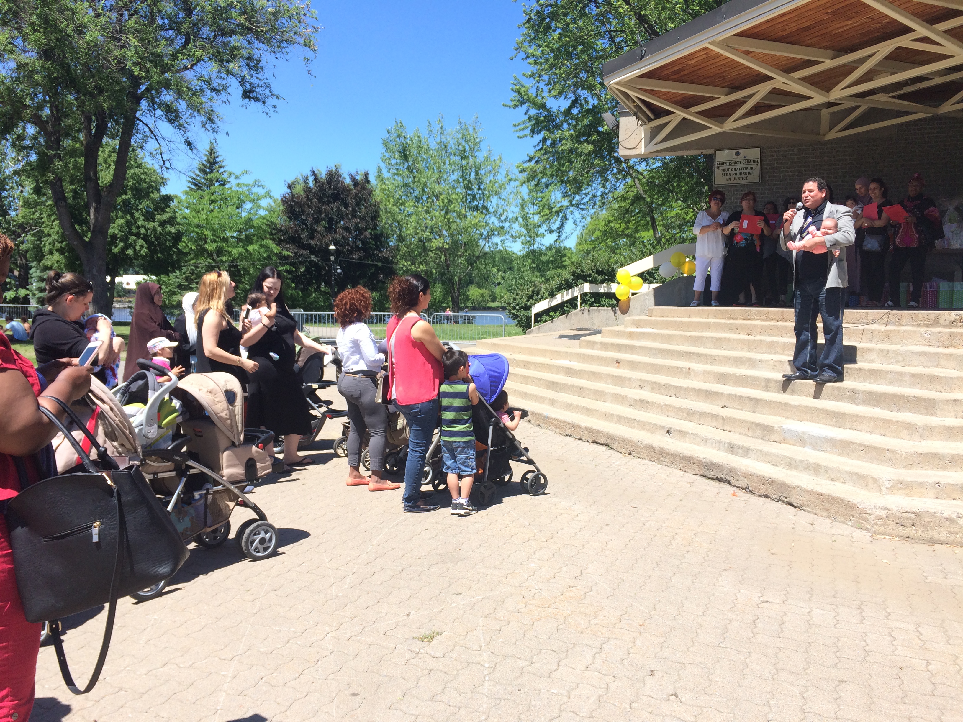 C’est en chansons, sous le soleil, que les membres de l’organisme communautaire Entre Parents de Montréal-Nord ont accueilli les poupons dans le parc Aimé-Léonard de l’arrondissement. Organisée avec le soutien de différents partenaires comme le PDQ39, le CIUSSS Nord-de-l’Île-de-Montréal ou encore la Fondation de la Visite, la Fête des nouveau-nés était l’occasion pour les parents de créer des liens et surtout d’obtenir de l’information.