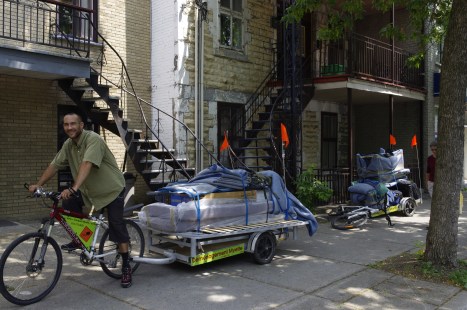 «Par contre en moyenne nos voyages durent 1 h 30 de plus qu’avec un camion, puisqu’en général ça nous prend un aller-retour de plus», expose M. Brunelle. «Mais ce n’est pas la rapidité qui intéresse les gens qui choisiront nos services, et ça leur laisse le temps d’organiser leur nouvel appartement au fur et à mesure», nuance-t-il.