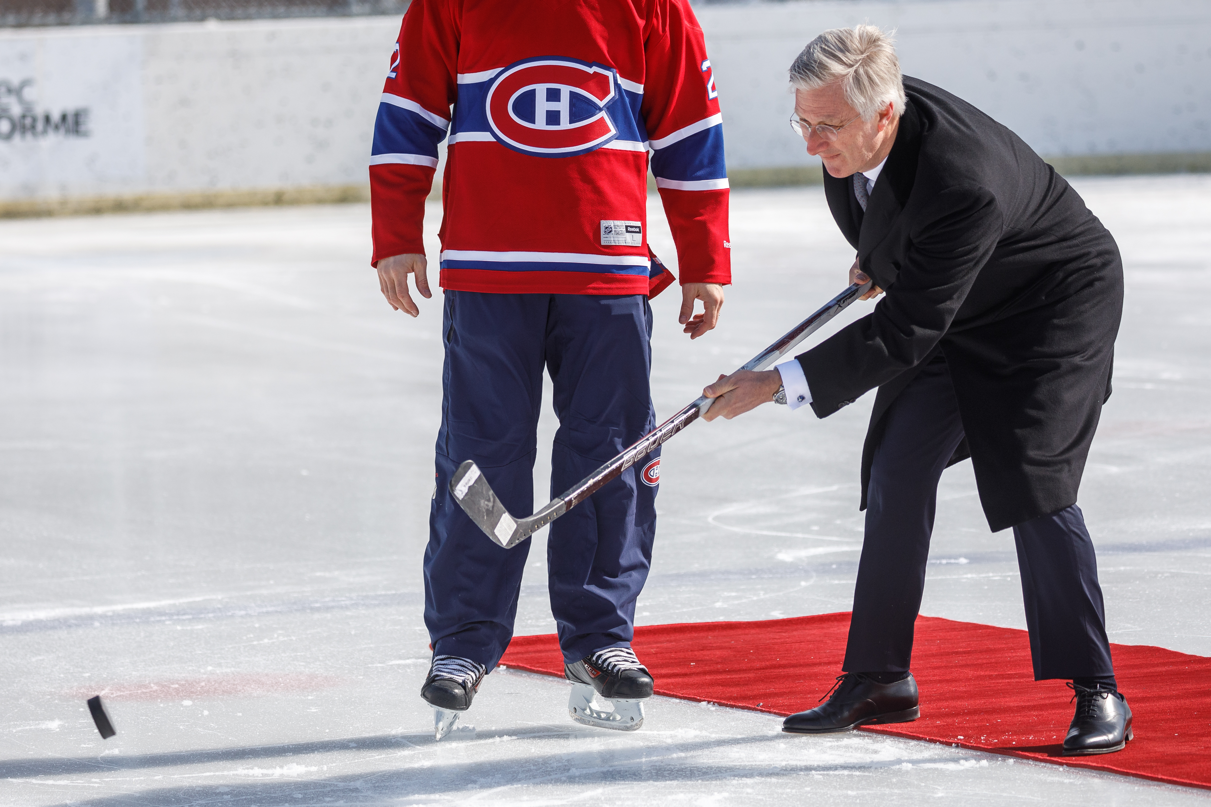 Impliqué depuis des années au sein de la Fondation, l’ancien joueur du Canadien Steve Bégin s’est prêté au jeu de lancer la rondelle avec le Roi Philippe sur la patinoire BLEU BLANC ROUGE.