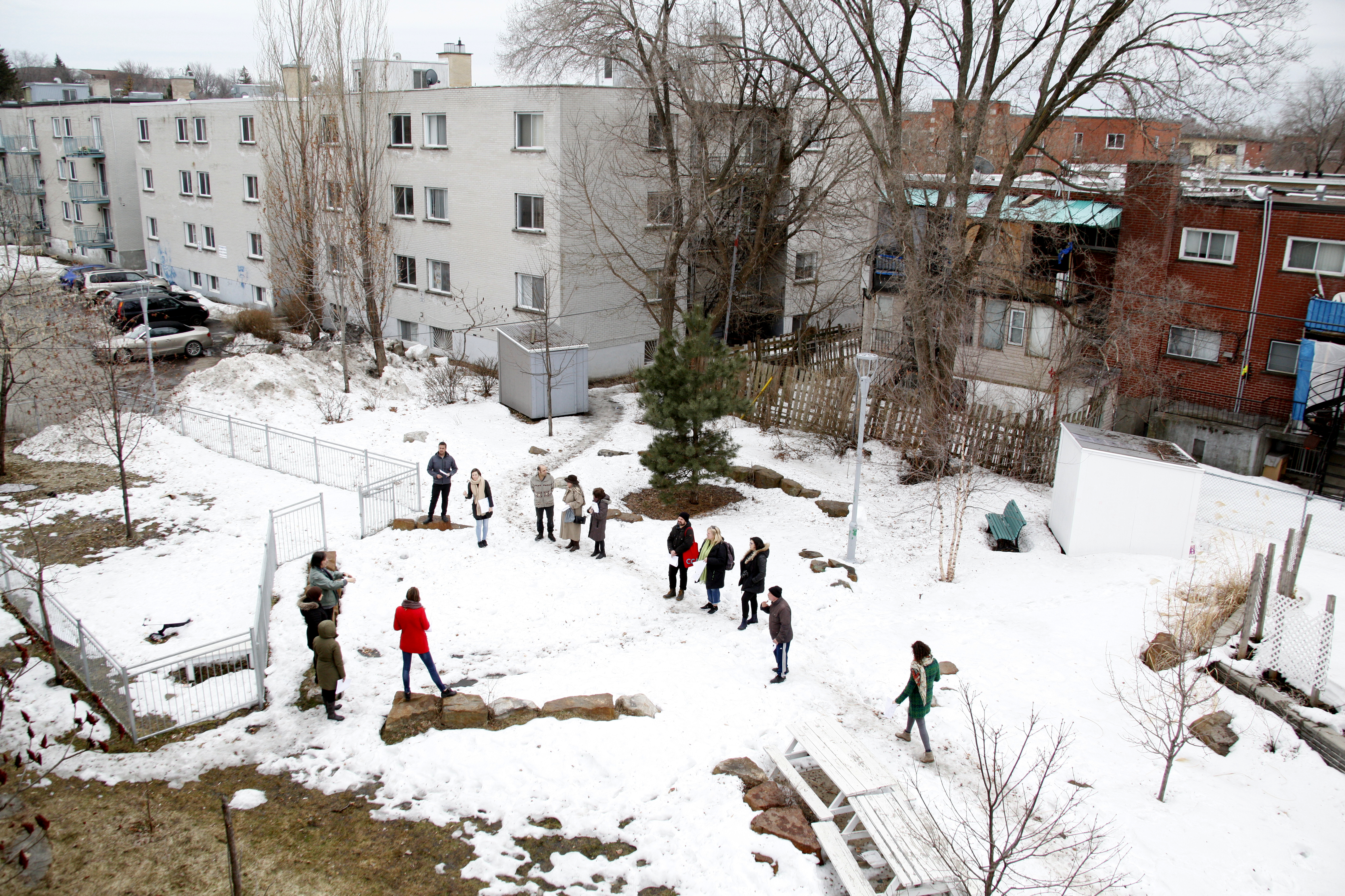 Histoire de La Voisinerie Inaugurée le 23 septembre 2012, La Voisinerie est un espace vert communautaire situé au milieu des bâtiments de l’Îlot-Pelletier. Dans ce quartier marqué dans le passé par des violences entre gangs, l’objectif était de créer un lieu convivial et accessible à toute la population. Ainsi, un ancien stationnement a été réaménagé en parc avec le soutien du Conseil régional de l’environnement pour verdir le site et lutter contre les îlots de chaleur. Des arbres, un petit jardin partagé, des bancs, un jeu d’échecs géant, ainsi qu’un espace réservé au CPE du quartier ont notamment été implantés. Après bientôt six ans, la fréquentation de La Voisinerie a diminué, mais les partenaires engagés dans ce projet espèrent relancer l’enthousiasme en rénovant cet espace citoyen. |