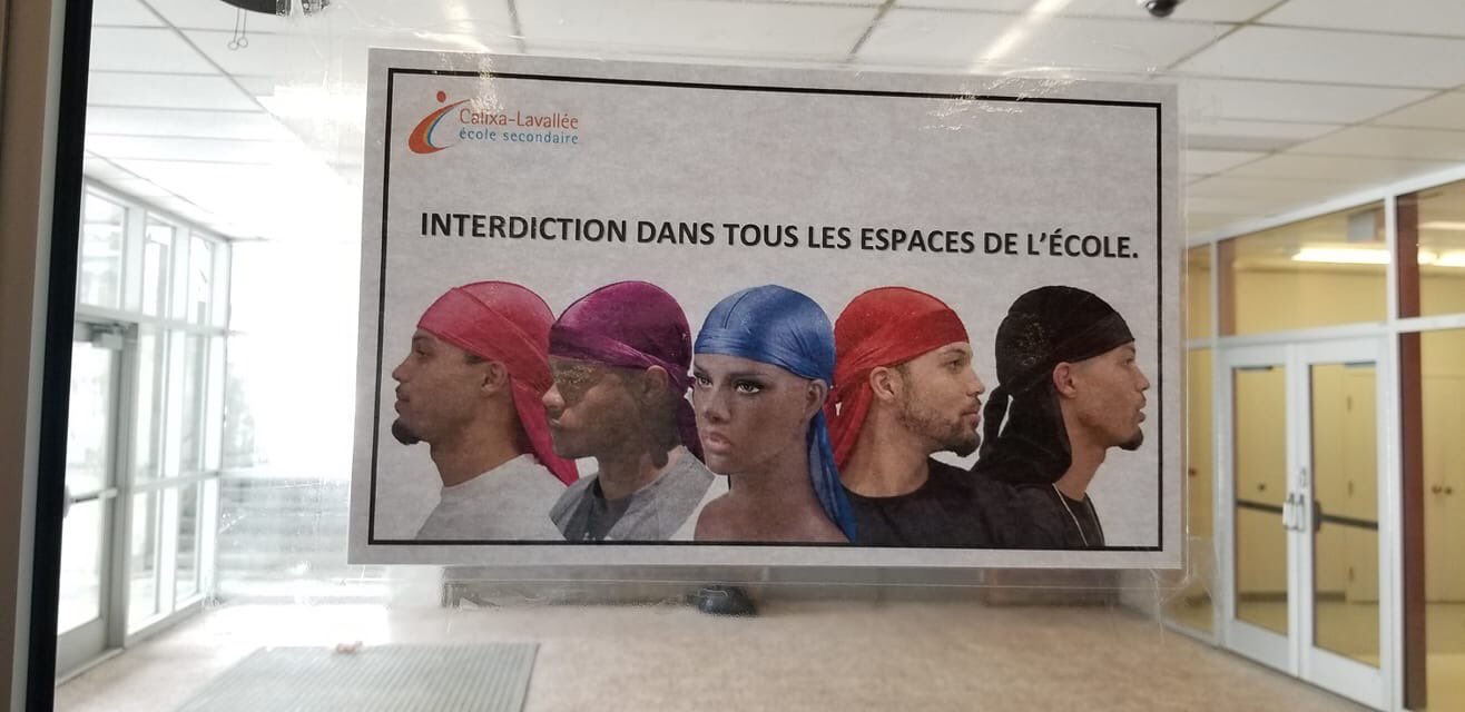 Face aux interrogations concernant l’affiche de Calixa-Lavallée, qui montrait en outre cinq personnes noires portant le durag, celle-ci a finalement été retirée par l’école au profit d’une affiche plus générale, avec des personnes aux profils différents et portants tous types de couvre-chefs.