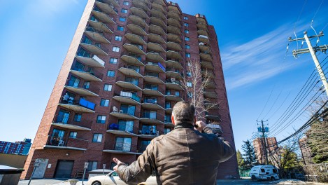François Chevrier chante depuis plus de 20 ans dans des résidences pour aînés, et ce n’est pas une pandémie qui allait l’arrêter. Il donne maintenant des spectacles extérieurs auxquels les résidents peuvent assister, perchés sur leur balcon