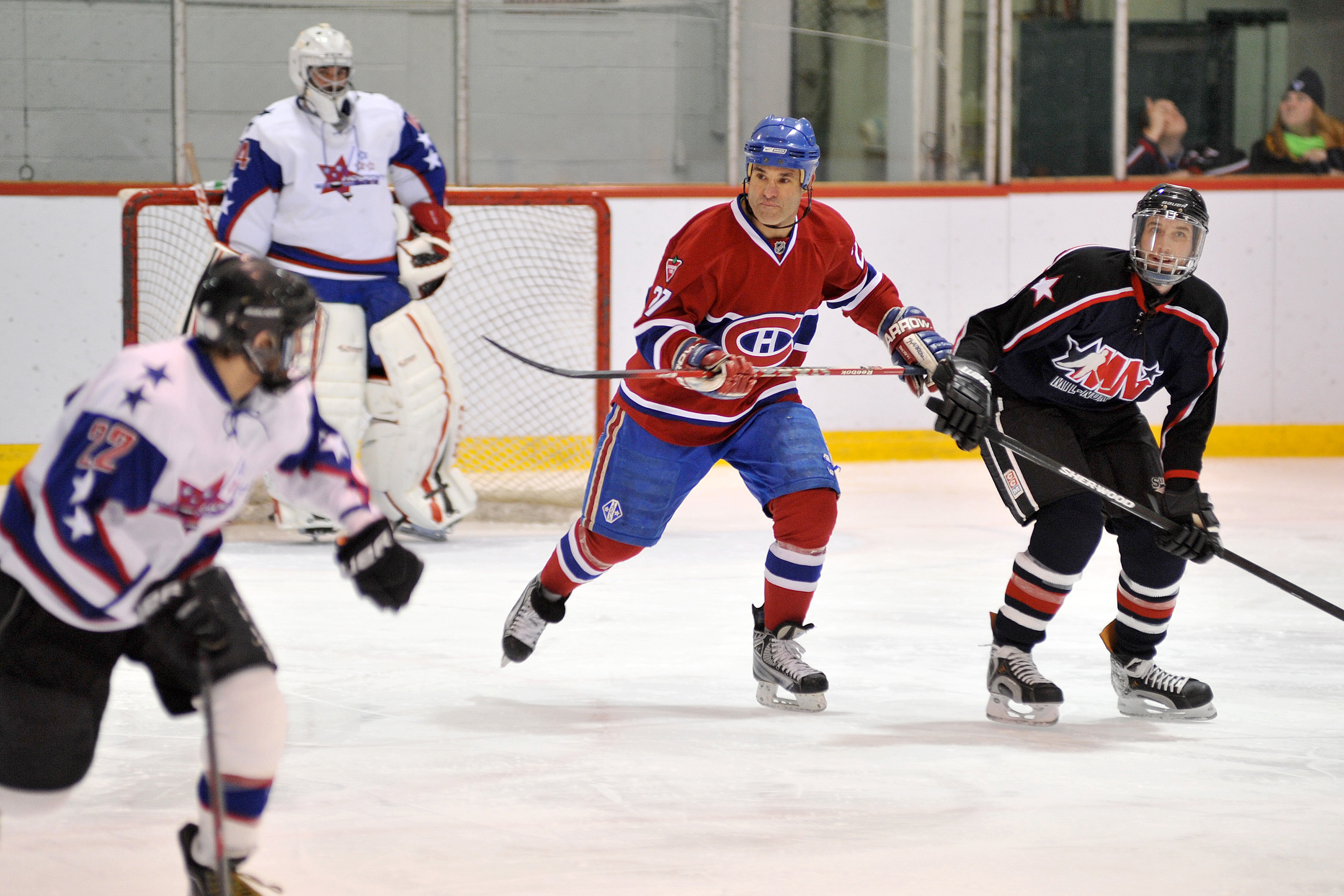 @BV:Jocelyn Lemieux, ancien joueur du Canadiens, lors de l’affrontement contre l’équipe du Hockey mineur de Montréal-Nord.