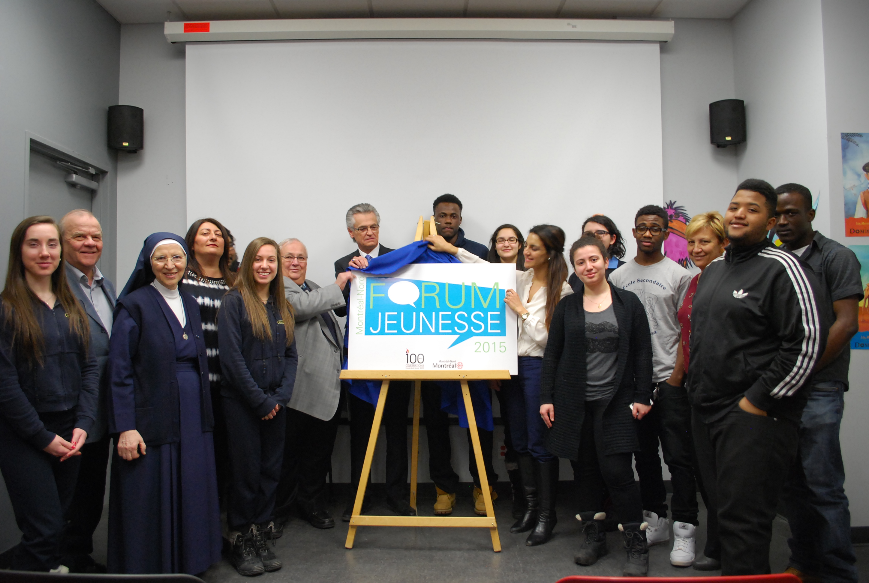 Le maire de l’arrondissement, Gilles Deguire, s’est adressé à eux avant le dévoilement du logo. Il a dit aux jeunes qu’ils peuvent être fiers d’habiter à Montréal-Nord, qu’il qualifie de «milieu riche» et qui a fêté ses 100 ans, il y a quelques jours. Le Forum est d’ailleurs organisé dans le cadre des festivités du centenaire.