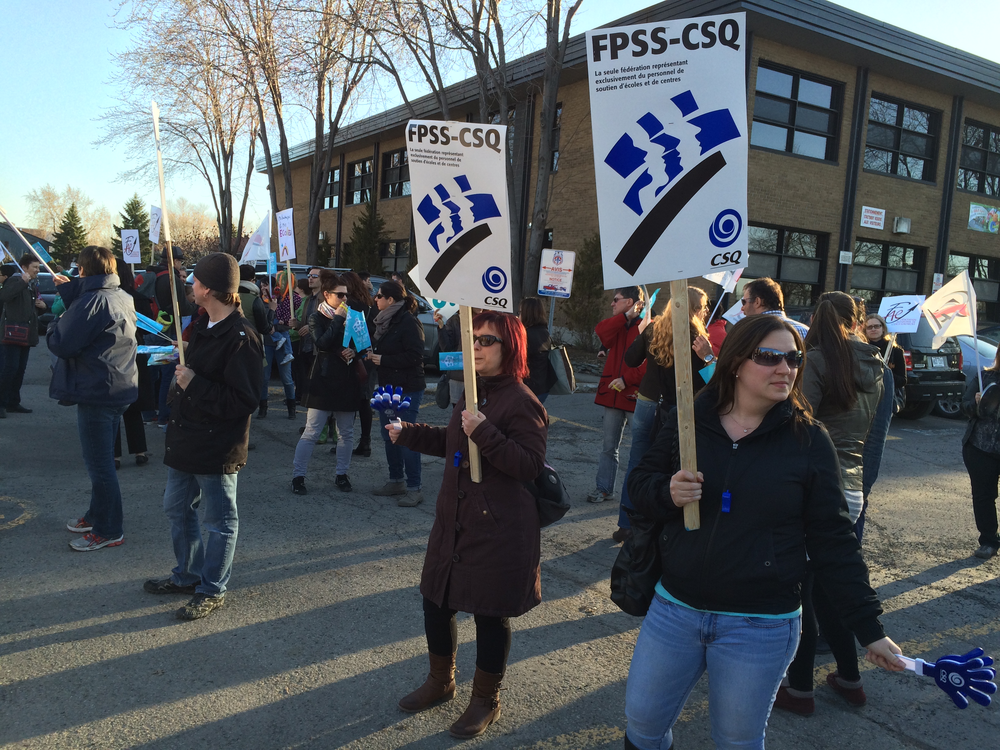 Pour les manifestants, les compressions du dernier budget provincial, de l’ordre de 350 M$, «sont une trahison envers les employés» et affecteront directement les services aux élèves.
