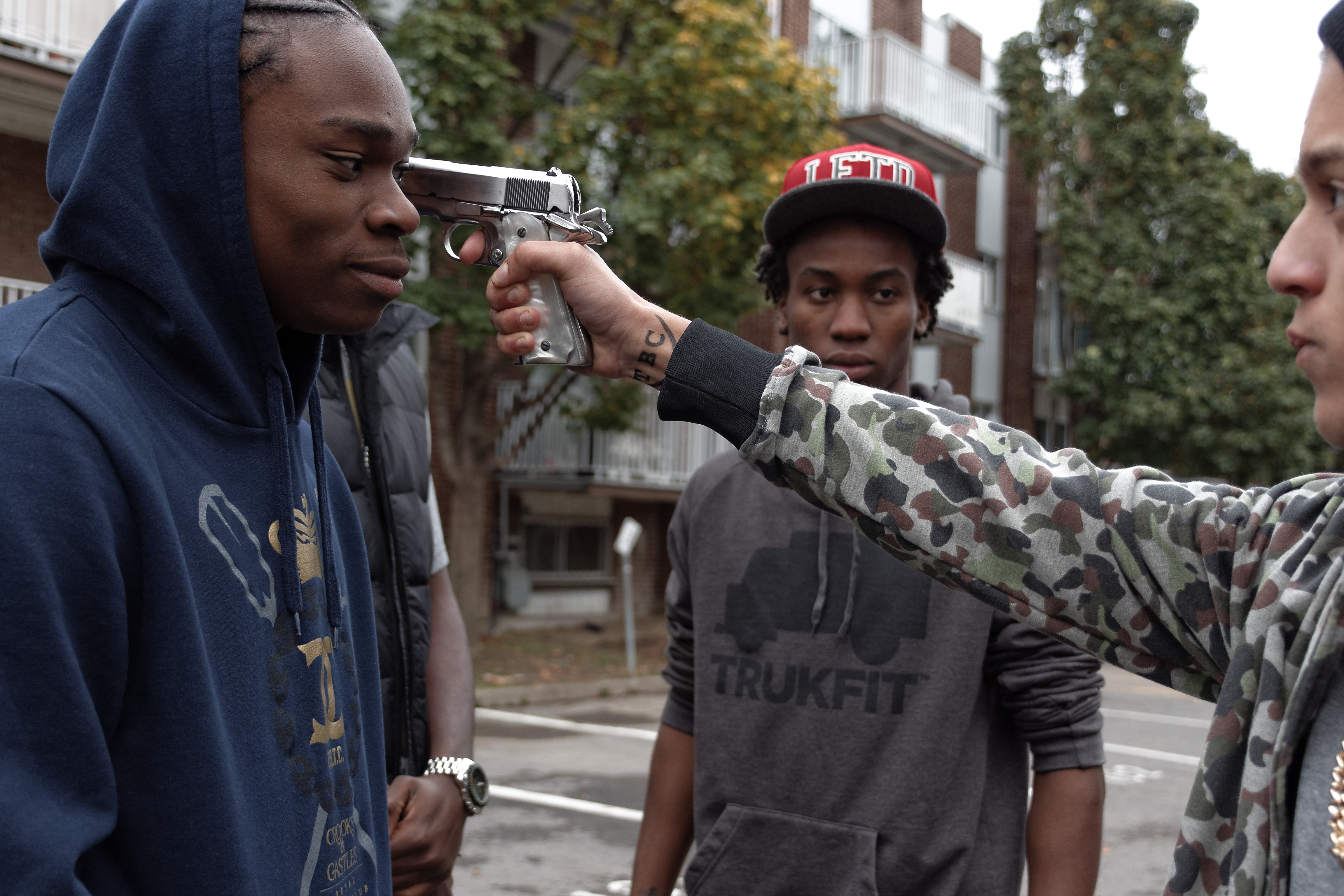 Il ne voulait pas non plus identifier un quartier en particulier, pour ne pas stigmatiser un secteur, mais aussi parce que cette réalité peut être vécue à plusieurs endroits. C’est pourquoi des scènes ont été tournées dans différents arrondissements de Montréal et dans d’autres villes, relate-t-il.
