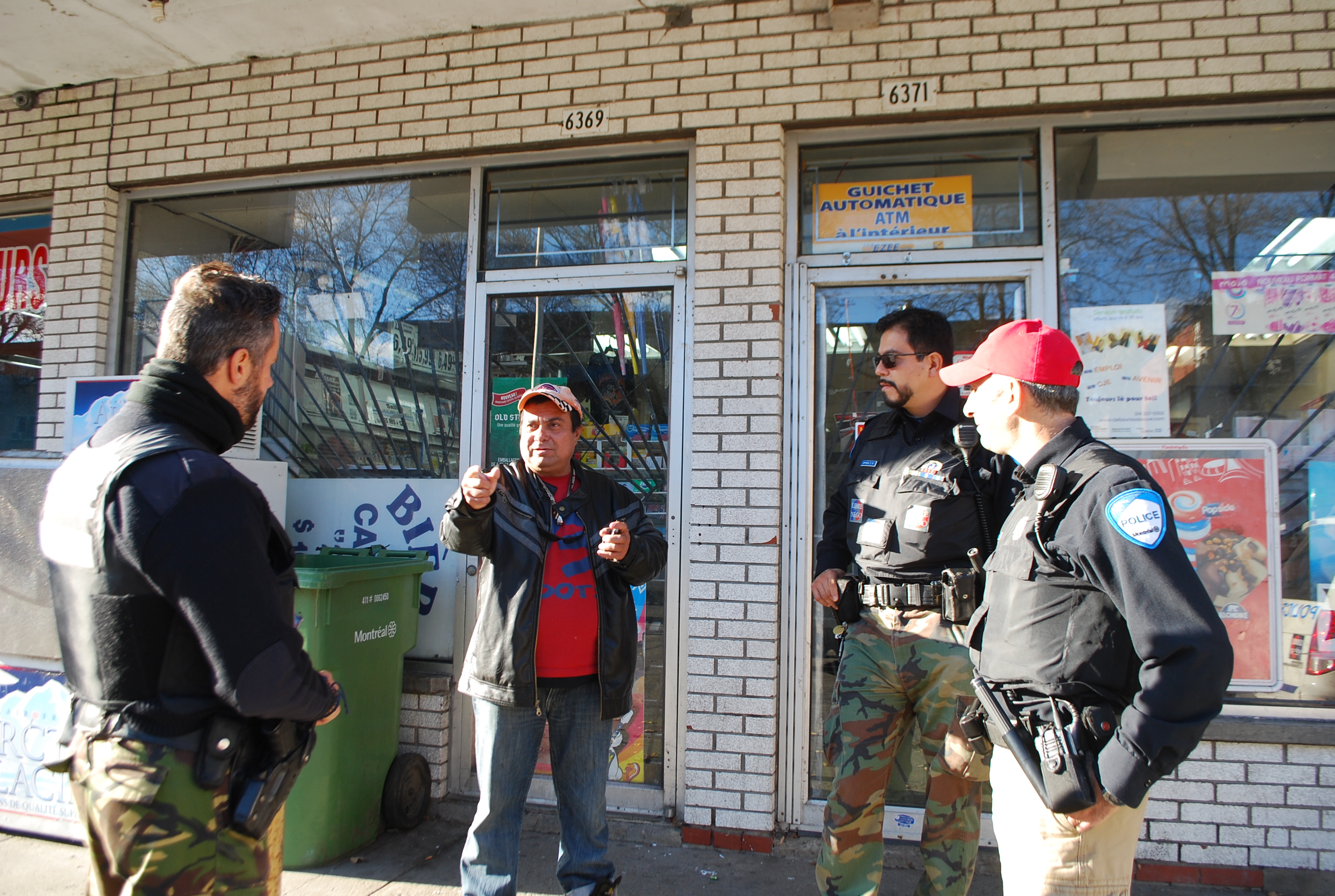 Après quelques discussions avec des jeunes et des commerçants, les agents se dirigent ensuite quelques coins de rue plus loin, au dépanneur Pierre. Encore une fois, quatre ou cinq jeunes qui n’avaient rien de particulier à dire aux agents décident de s’éloigner.
