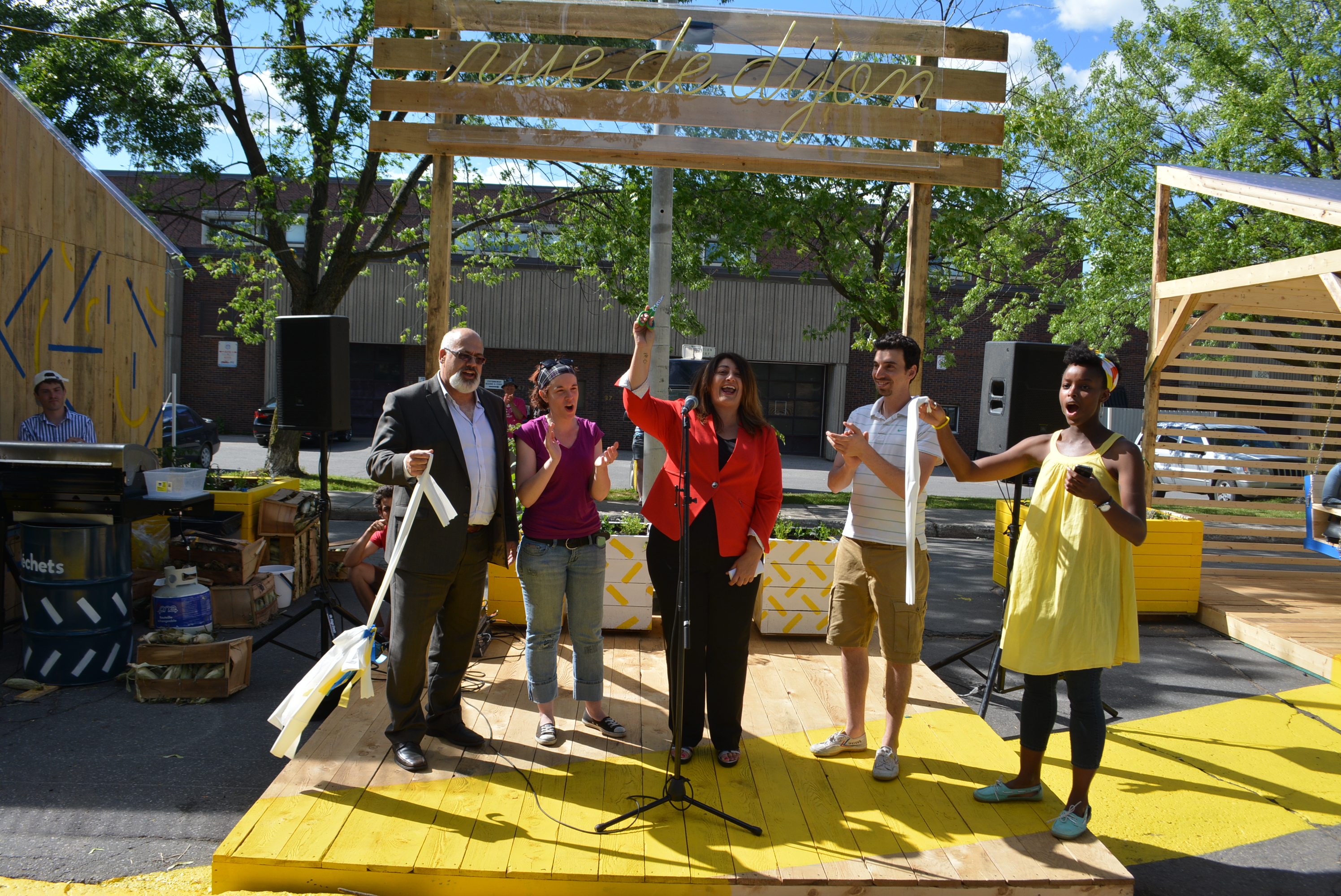 «Accueillante, animée et familiale!» C’est ainsi que la conseillère d’arrondissement Sylvia Lo Bianco a défini la Rue de Dijon, transformé en place de village cet été, lors de l’inauguration du 21 juin. À peine inaugurée, la Rue de Dijon est envahie par Petits et Grands du quartier, qui explorent les 10 installations imaginées par Pépinière & Co, un organisme à but non lucratif dédié à la revitalisation de sites urbains : placotoire, aires de pique-nique, balançoires familiales, BBQ, hamacs, et même une scène ouverte à tous.